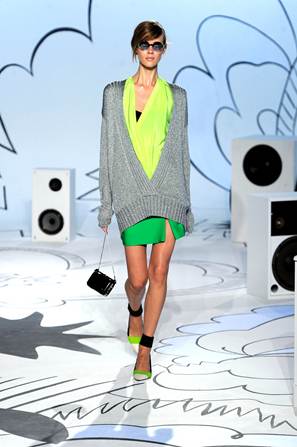 Les accessoires ne sont pas en reste dans cette pré-collection mais là encore pas de minimalisme. Eux aussi ont droit à leur touche de couleur mais redonnent de l’élégance à une silhouette pouvant sembler trop sportive. Sandales bicolores et lunettes de soleil accompagnent chaque passage. Des sacs à main surdimensionnés souvent portés en bandoulière alternent avec des micro-sacs portés nonchalamment par les chaînes.