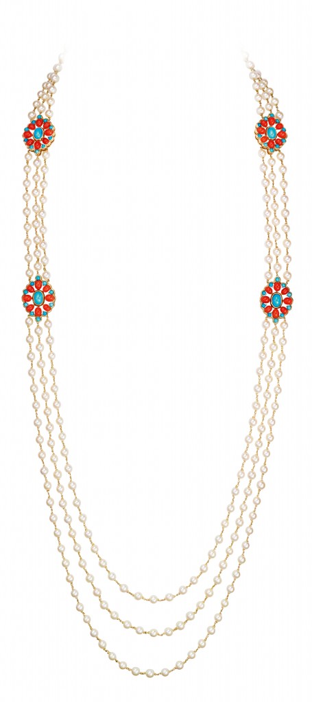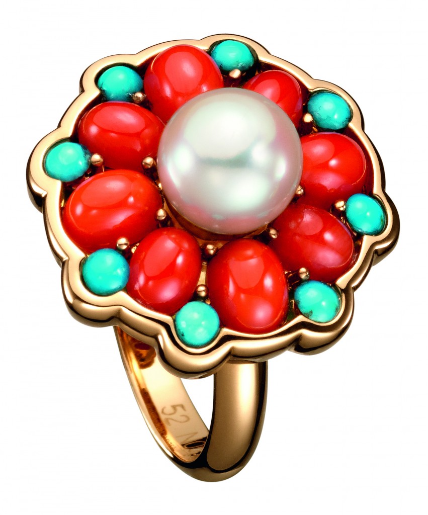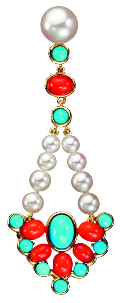 La parure Parrigi, directement inspirée des fonds sous-marins, fait la part belle aux perles rondes de culture, aux turquoises et au corail rouge dans des pièces épurées et légères pour des femmes sirènes des temps modernes.