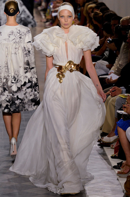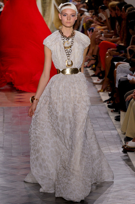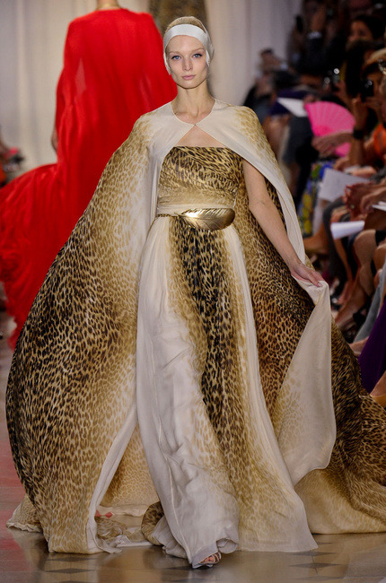 L’ancien directeur artistique de la Maison Ungaro n’a pas déçu pour sa première collection de Haute-Couture. Giambattista Valli s’affirme déjà comme un créateur sur lequel il faudra dorénavant compter avec ses effets de volumes. Broderies, plumes, perles, imprimés fleuris ou animaliers subliment des silhouettes pensées pour une femme romantique moderne excessivement élégante et aimant les pièces bien coupées