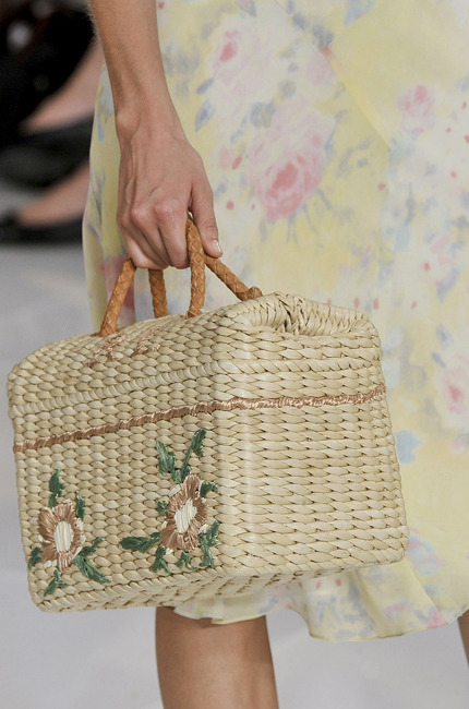 Une importance toute particulière a été apportée aux accessoires dès le début du défilé. Chapeaux cloche, sandales à plateforme en raphia, panier de pique-nique ou sac besace à franges et foulards au porté lâche renforcent l’impression de légèreté et d’insouciance qui transparaît dans les premières passages.