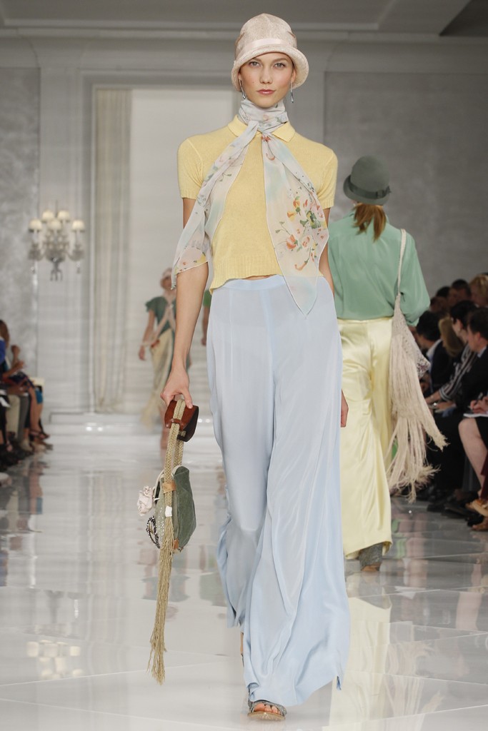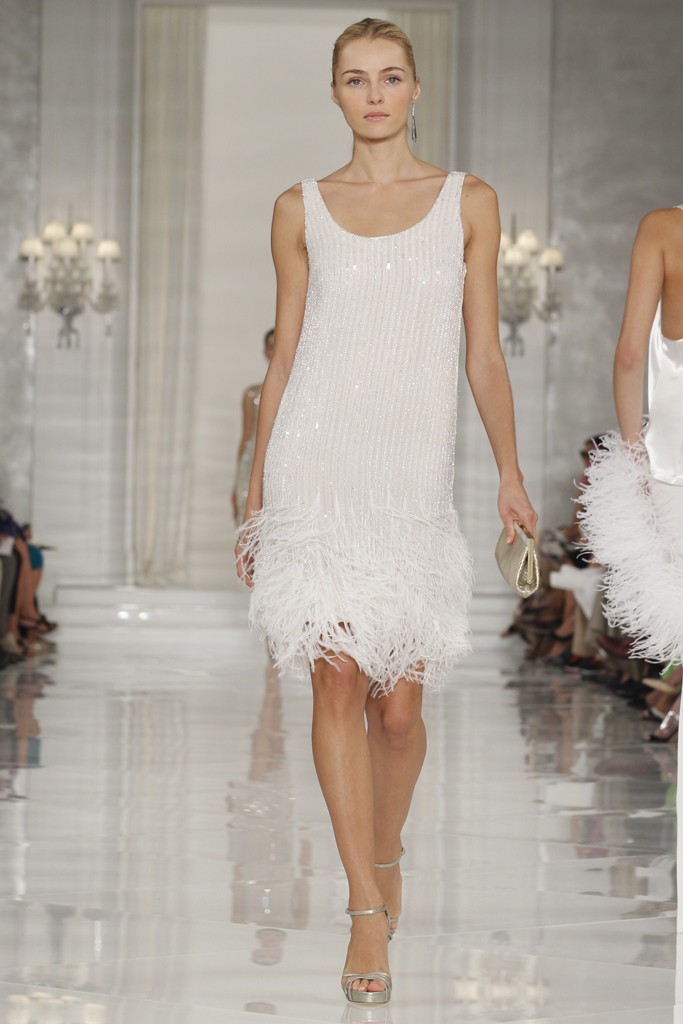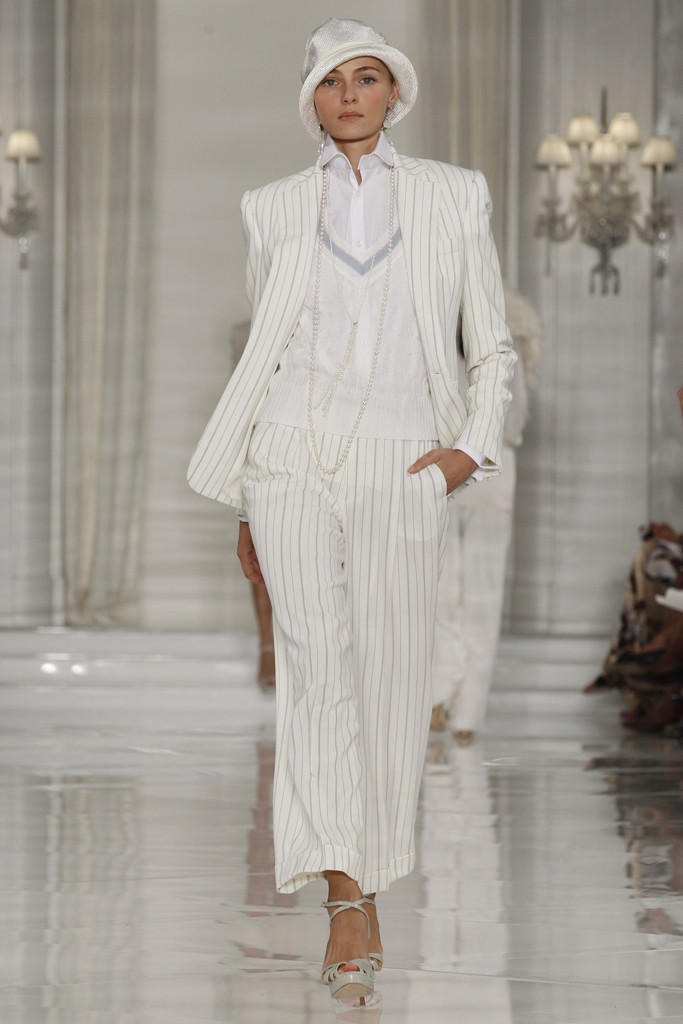 L’esprit de Gatsby le Magnifique était bien dans l’air lors de la présentation de la collection Printemps Été 2012 de Ralph Lauren. Comme un écho aux tenues masculines du film The Great Gatsby de Jack Clayton dessinées par Ralph Lauren lui-même et un avant-goût de la nouvelle version du film par Baz Luhrmann, le défilé a rapidement pris des allures de retour dans les années folles.