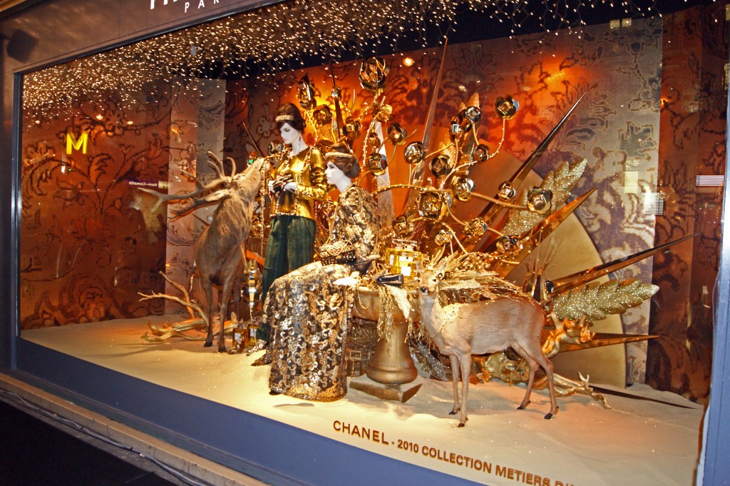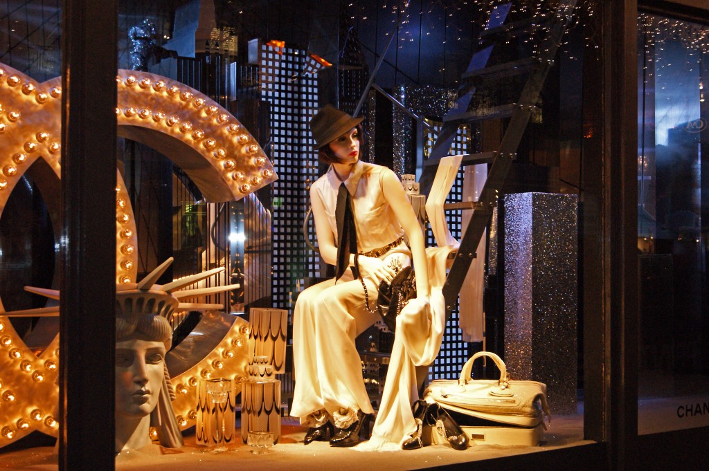 Façades illuminées, vitrines animées mêlant humour et élégance, cadeaux à l’infini, des plus classiques aux plus fous, dorures et rouges flamboyants défilent sous nos yeux. Toute la façade du Printemps s’est drapé d’étoiles, de rêves rendant ainsi hommage à l’élégance de la maison de couture et de son illustre créatrice Gabrielle Chanel.