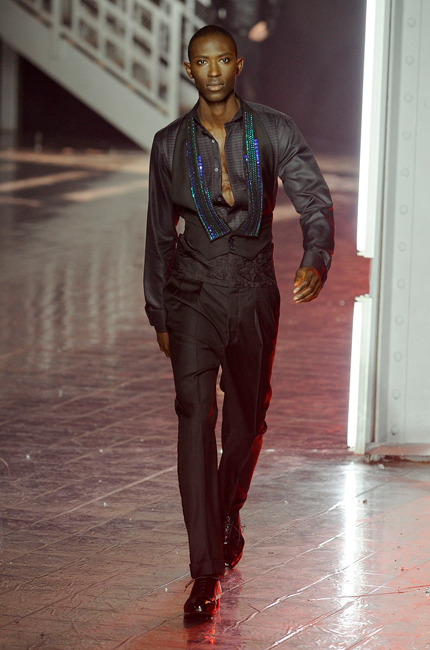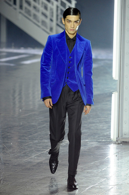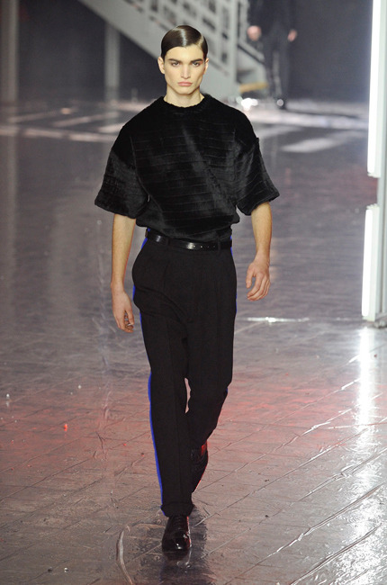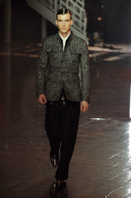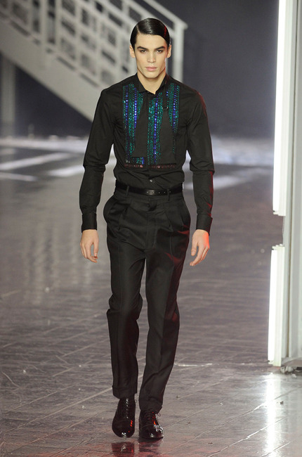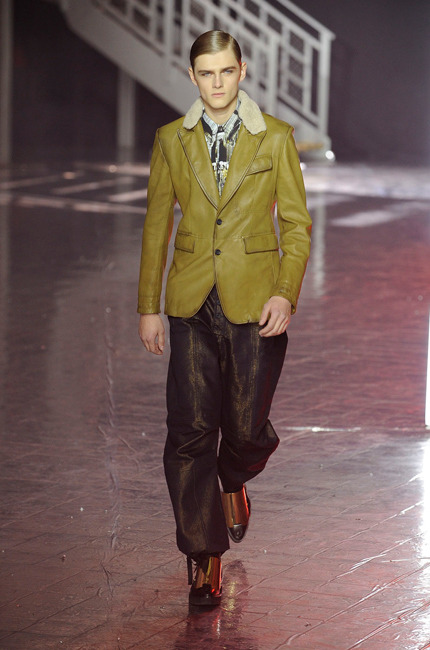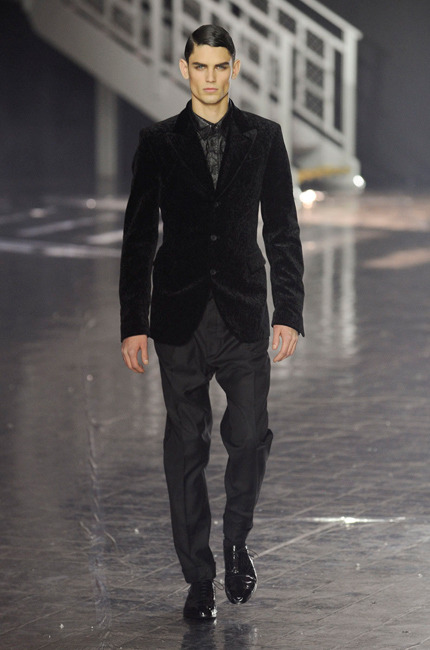 Costumes impeccables, pantalons savamment réinventés et jeu de matières (cuir verni, tweed, velours, flanelle, coton) sont les maîtres mots d’une collection originale pour un homme à la virilité affirmée. Cette collection Automne Hiver 2012 – 2013 regorge de propositions stylistiques pour un homme à la prestance indéniable et nous renvoie à une époque où l’élégance était de mise, où l’homme parlait peu et agissait beaucoup.
