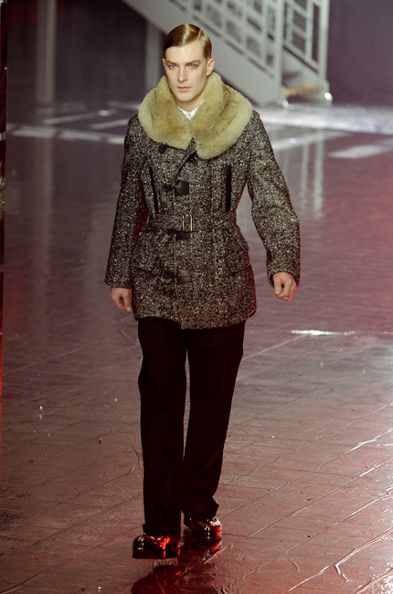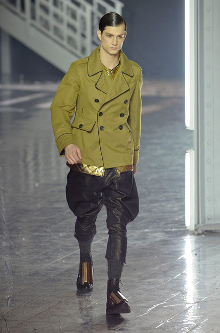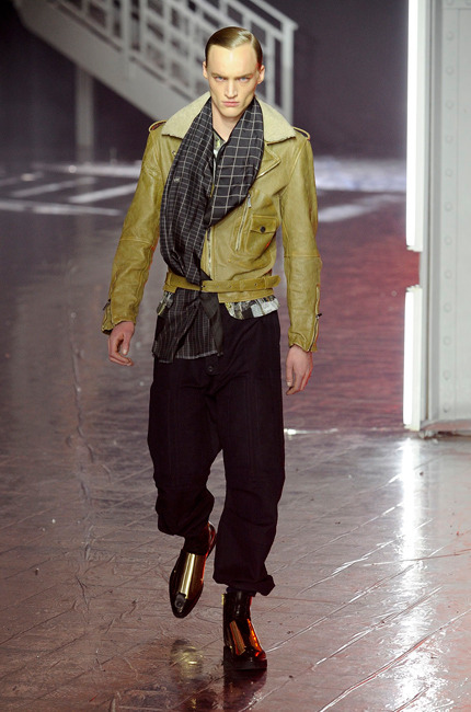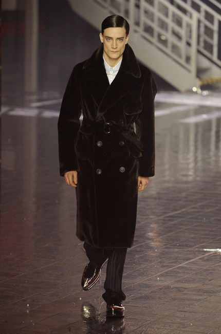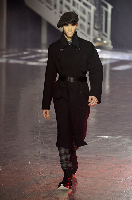 Pièce phare cette saison, le manteau domine également dans cette collection. L’homme Galliano le portera croisé, ceinturé et privilégiera la fourrure, le cuir, le drap laine ou le tartan après un bref passage en vinyle. Et pour les grands froids, une bonne canadienne fera l’affaire.