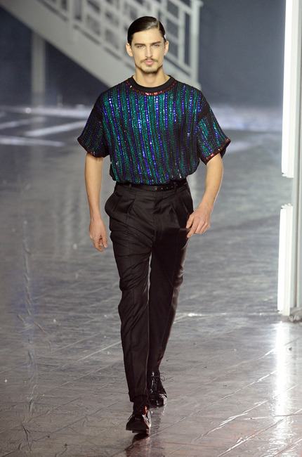 Pour l’Automne Hiver 2012 – 2013, l’homme Galliano nous renvoie à l’image d’un homme chic à la virilité affirmée. Un peu gangster, un peu col blanc et sportif avant tout, il semble armé pour une fin d’année qui s’annonce difficile. Et Bill Gaytten, qui assoit ainsi son statut affirmant par la même occasion son talent, lui fournit ses armes avec un soupçon d’élégance.