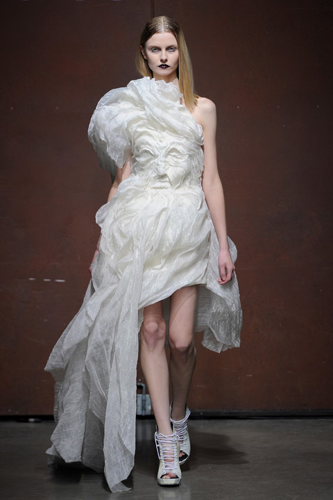 Yiqing Yin, saison après saison, définit son identité faite de plissée-drapés, de maîtrise des volumes mais aussi de l’affirmation d’une féminité moderne, contemporaine à l’aise dans ses contradictions. Femme forte et fragile à la fois, elle distille ses traits de caractère dans une couture délicate, créative et poétique… à son image. Avec cette collection printemps Eté 2012, elle s’affirme comme l’un des talents à suivre. Et c’est exactement ce que nous faisons.