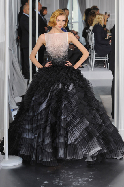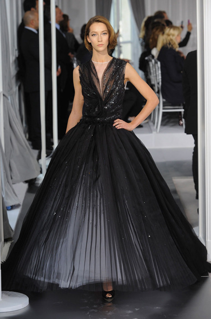 La transparence est omniprésente mais reste suggestive dévoilant toute en discrétion le corps de la femme. Les superpositions sont légion. Ainsi une mousseline blanche surplombant du noir prend des reflets changeants selon la lumière. Chaque robe semble évoluer différemment au gré des pas délicats de la femme Dior.