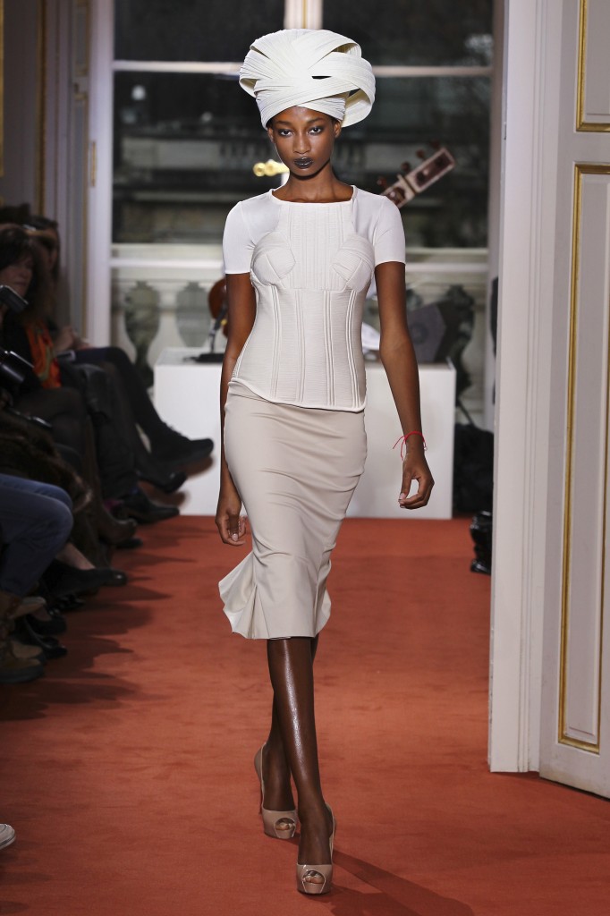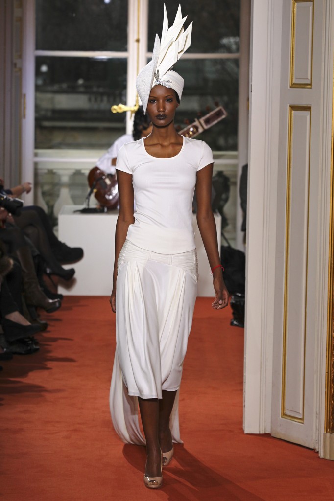 Mêlant l’élégance des années 60 et la réalité d’une Inde plus moderne, cette collection regorge de petits détails couture tant dans le choix des matières que dans la forme choisie. Ainsi, une maxi-ceinture, une robe et un boléro sont taillés dans un cuir d’autruche teint. Et lorsque la femme Didit Hediprasetyo veut atteindre l’élégance ultime, c’est dans une robe immaculée se terminant par de longues plumes qu’elle trouve son salut.