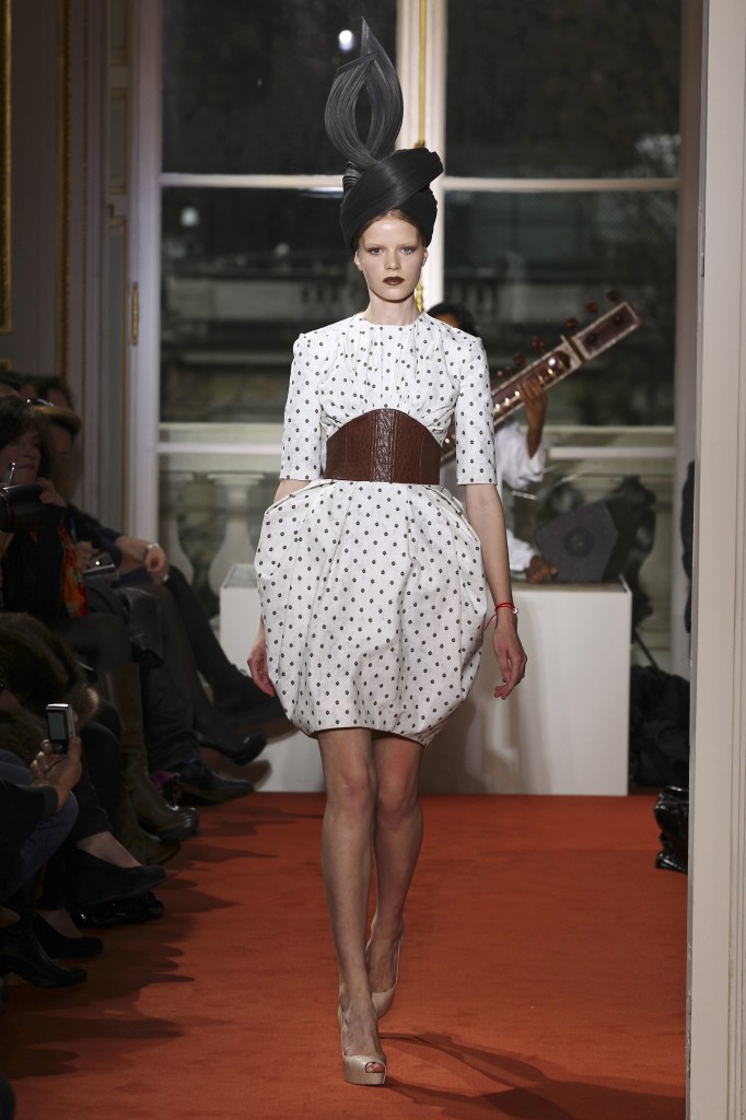 Voguant entre imprimés éléphants, fleurs de jasmin, tenues de polo et volumes domptés, cette collection Printemps Été 2012 est l’expression d’une couture plus maîtrisée mais également plus audacieuse alliant modernité et élégance pour une femme nomade. Construite toute en volumes, chaque silhouette est une démonstration du sens de la coupe et de la rondeur du créateur.