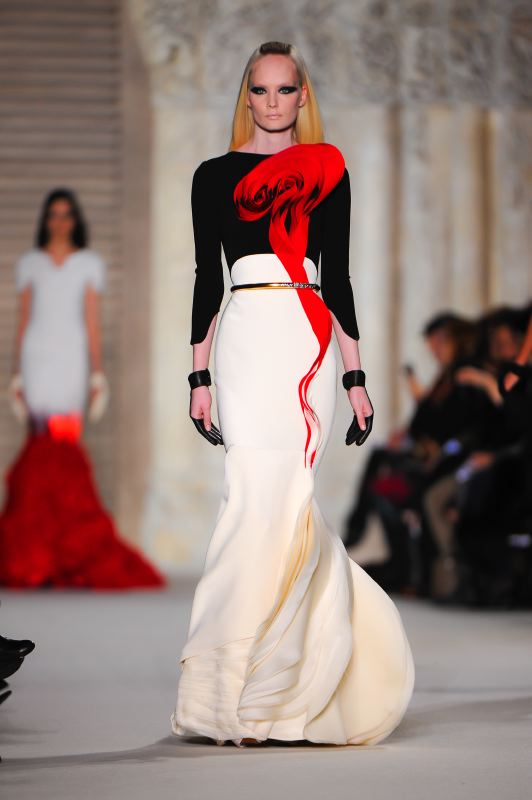 Une nouvelle fois, le talent de Stéphane Rolland fait mouche. Pour ses dix ans de créations de Haute-Couture, il nous livre une nouvelle écriture de son style, concis, percutant et se fait l’expression d’une poésie graphique. En véritable artiste, il imagine des robes sculptures aux lignes graphiques pour des femmes fortes à la personnalité affirmée.