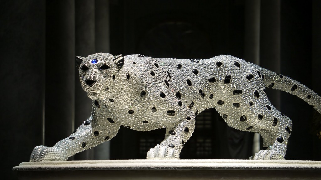 On y découvre l’emblématique panthère Cartier s’échappant de la boutique Parisienne en brisant son enveloppe de diamant. Majestueuse, elle nous invite à la suivre dans sa course effrénée dans l’espace et le temps et nous transporte dans un voyage fantasmagorique peuplé des incontournables bijoux du joaillier, des classiques pavés parisiens à la Grande Muraille de Chine, en passant par la blanche Russie des Tsars et l’Inde mystérieuse des Maharadjas.
