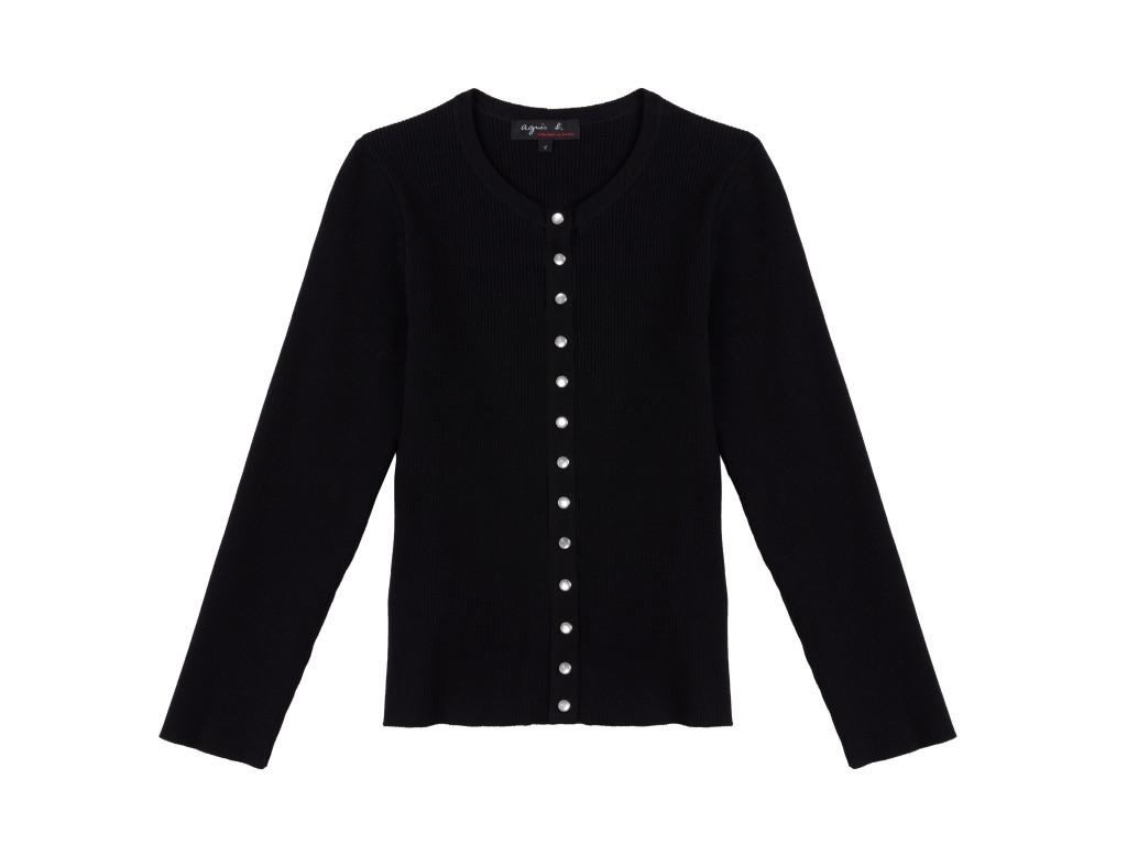 Désormais emblématique du style Agnès b. , le cardigan-pression est à l’image de sa mode : une mode qui vit et se vit selon l’air du temps, un vestiaire qui s’adapte à chaque personnalité et surtout qui peut se porter très longtemps.