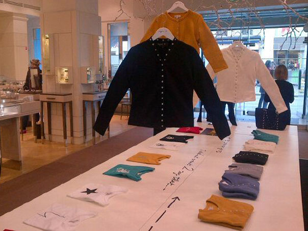 A côté de l’exposition organisée jusqu’au 5 mai 2012, le grand magasin propose une large sélection de pièces emblématiques de la Maison Agnès b. en vente sur un corner éphémère à l’entrée du magasin.