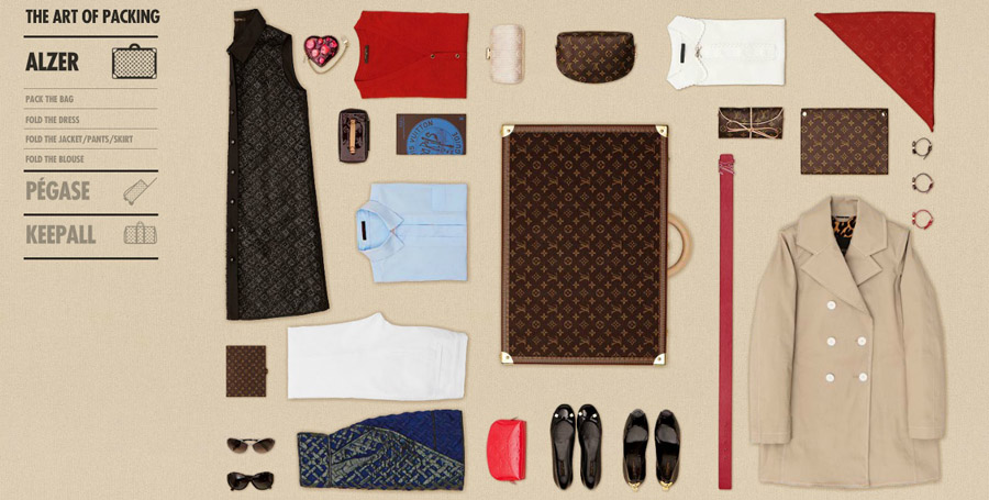 Très ludique, cette petite animation est vraiment inventive et fourmille de bons conseils, même si on ne possède pas de bagages Louis Vuitton. Grâce à une démonstration interactive, on ouvre sa valise, on plie sa veste ou sa robe, on ferme les boutons de sa blouse avec sa souris.