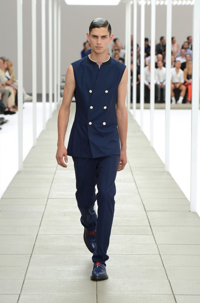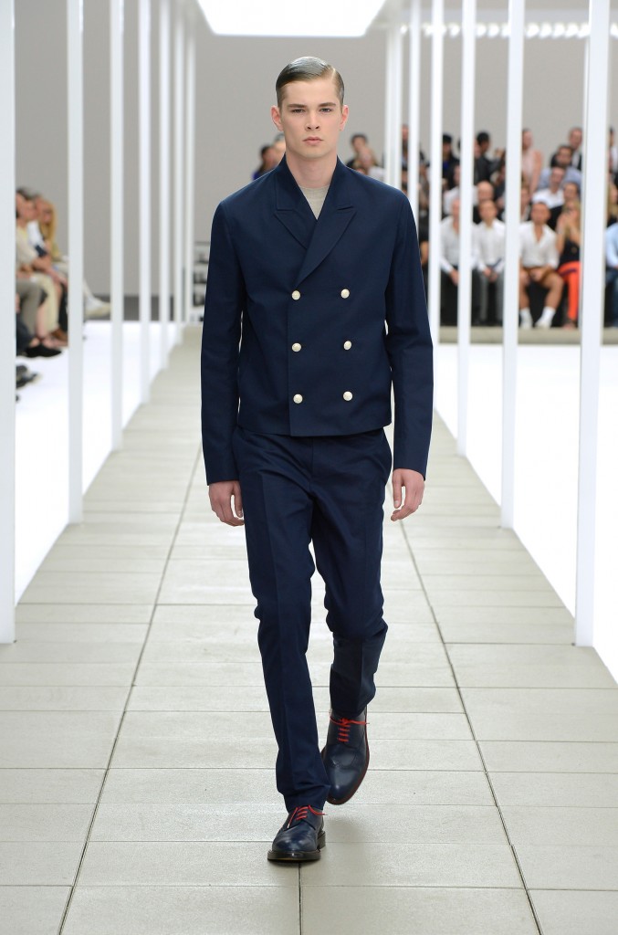 Mais le directeur artistique de Dior Homme va bien au delà d’un simple exercice de style autour du thème naval et nous propose une garde-robe complète avec pour point de départ un blazer bleu marine près du corps qui n’entrave aucunement les mouvements.