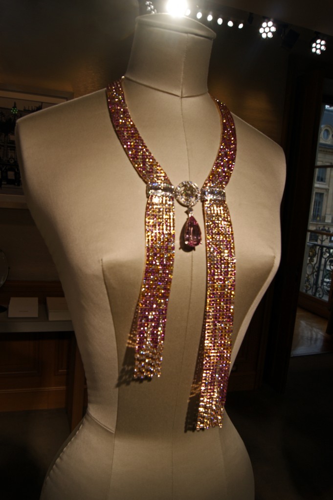 Notre escale suivante nous fait découvrir une tradition chez Boucheron : le multiporté à travers la parure Perle au Trésor, objet aux mille et un mystères. A travers cet objet insolite, Boucheron rend hommage aux perles considérées auparavant comme plus précieuses que les diamants.