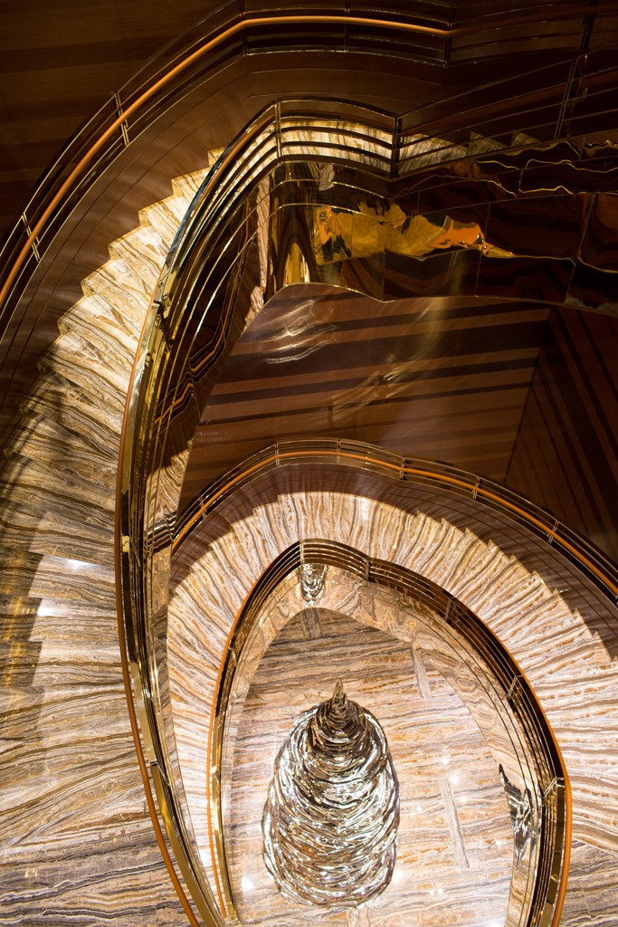 Ce bâtiment de quatre étages, possédant chacun une atmosphère différente accessibles par un époustouflant escalier doré en spirale, a été imaginé par l’architecte Peter Marino.