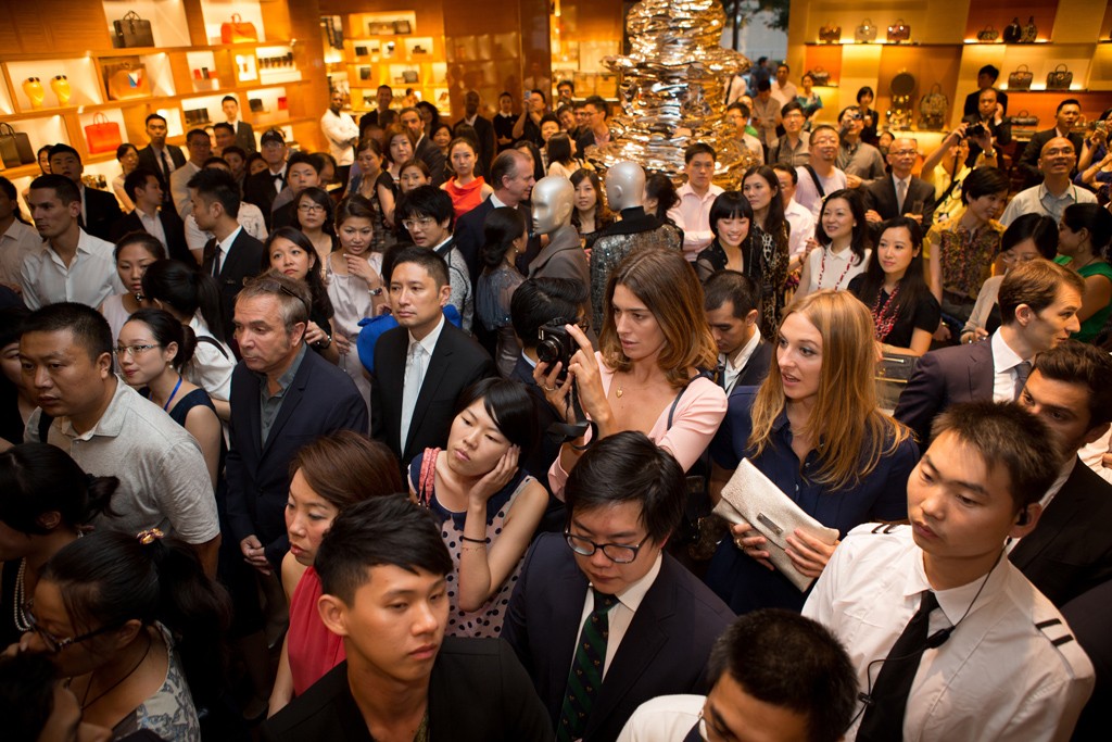 Ce défilé ponctuait deux jours de festivités qui avaient débuté le mercredi par l’inauguration du plus grand magasin de la Maison Louis Vuitton dans le célèbre Plaza 66 avec un cocktail et dîner de gala agrémentés d’une performance de la pianiste classique Li Yundi.