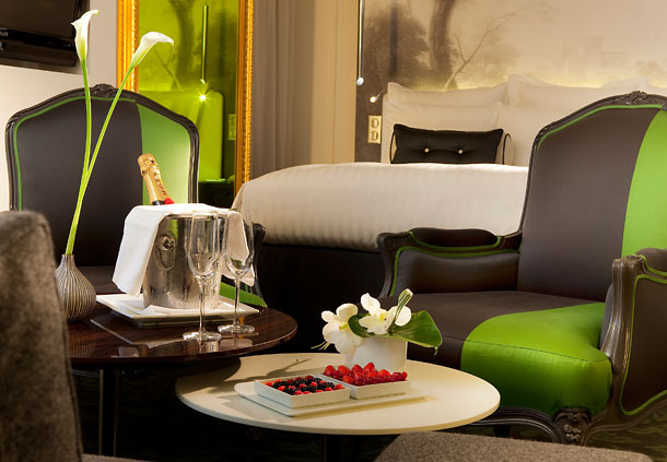 Les 122 chambres de l’hôtel sont autant d’espaces où se mêle le confort, élégance et harmonie. La décoration est non seulement inspirée de l’histoire et de la culture du lieu mais est aussi associée au style avant‐gardiste d’un Paris contemporain.