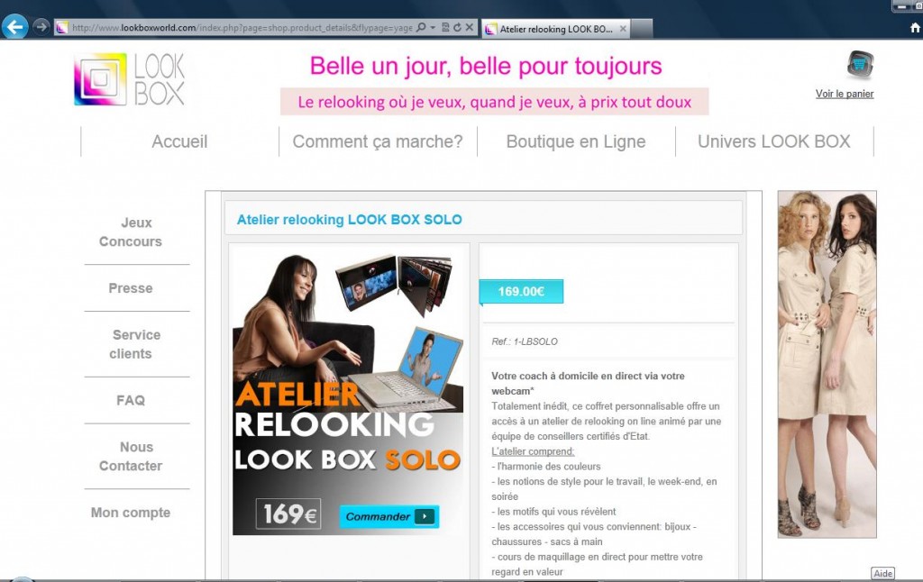 Grâce à ce coffret totalement inédit, vous aurez accès, durant deux heures à un atelier de relooking en ligne. Une équipe de conseillers, connectée des bureaux de l’agence via un système vidéo haute définition très performant, va alors vous prendre en main pour vous faire découvrir les tendances du moment et trouver les vêtements, matières, formes, couleurs et bien sûr motifs qui vous correspondent.