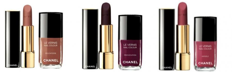 La Maison Chanel nous proposera trois twin-sets aux teintes étonnantes associant rouge à lèvres et vernis.