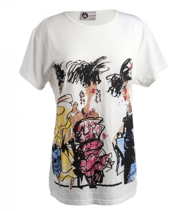 La maison Baldini dévoilera son t-shirt imaginé spécialement pour la Vogue Fashion Night, blanc orné d’un croquis de souliers tandis que le foulard proposé par Paul Smith sera bleu roi et paré d’une impression rose.