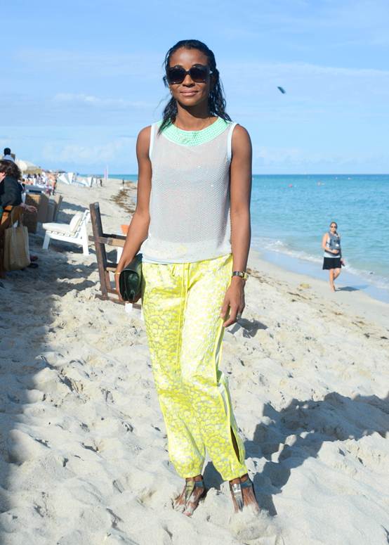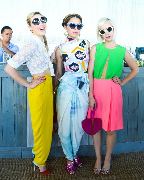 La DJette Mia Moretti portait un pantalon d’un jaune éclatant, des chaussures et une paire de lunette DVF de la collection Printemps-Eté 2013, la styliste Cleo Wade portait un pantalon drapé DVF de la collection Printemps-Eté 2013 et la violoniste Caitlin Moe avait craqué pour la pétillante silhouette 26 de la collection Resort 2013 qu’elle avait associée à une minaudière fuschia Heart Fetish.