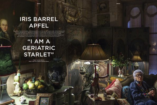 A ne pas rater l’article de Peter Van Agtmael consacré à une artiste géniale reconnaissable à ces lunettes, l’extravagante collectionneuse et créatrice Iris Barrel Apfel. I am a geriatric starlet nous en apprend un peu plus sur celle qui célèbre à travers ses gris-gris un orientalisme haut en couleur, à l’image de son don suprême : La fantaisie de la vie.