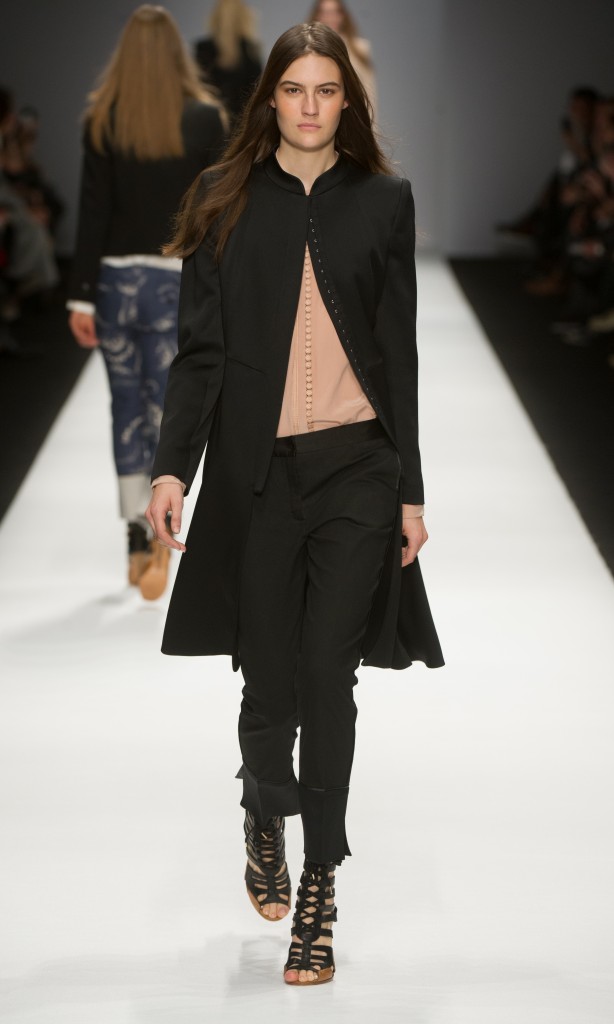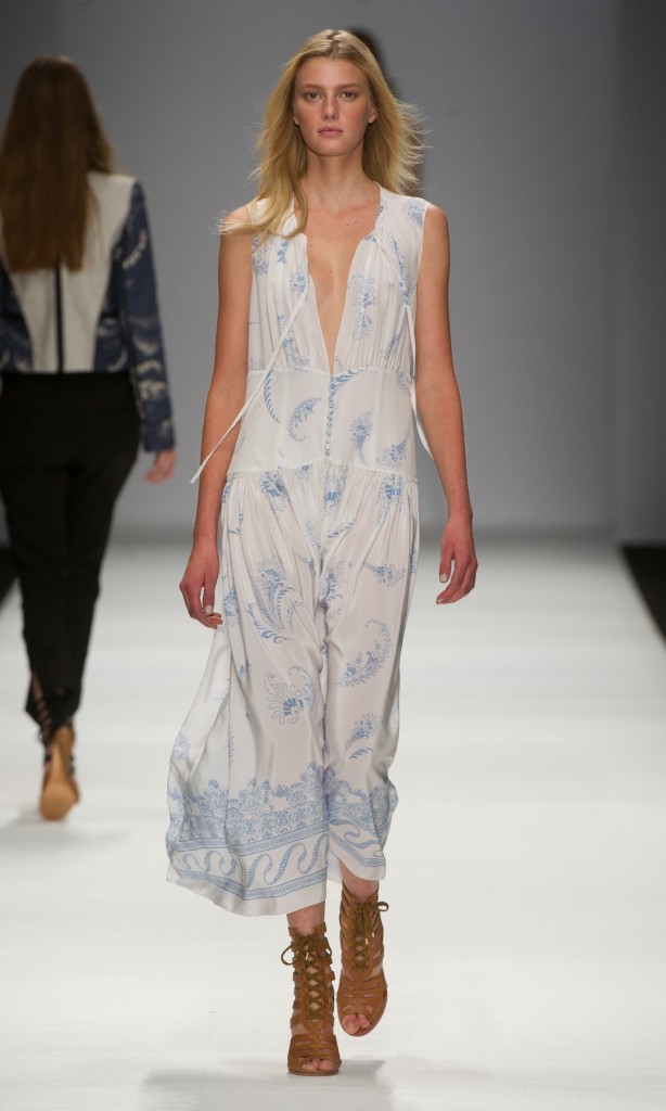 Les cheveux détachés dans un flou très naturel, la femme Vanessa Bruno arpente les rues de la ville dans une succession de pièces à la sensualité épurée. Le propos est limpide, jeux de transparences et figures de styles sont les maîtres mots d’une collection redonnant ses lettres de noblesse à une jeune fille en fleurs devenue femme à l’esprit bohème.