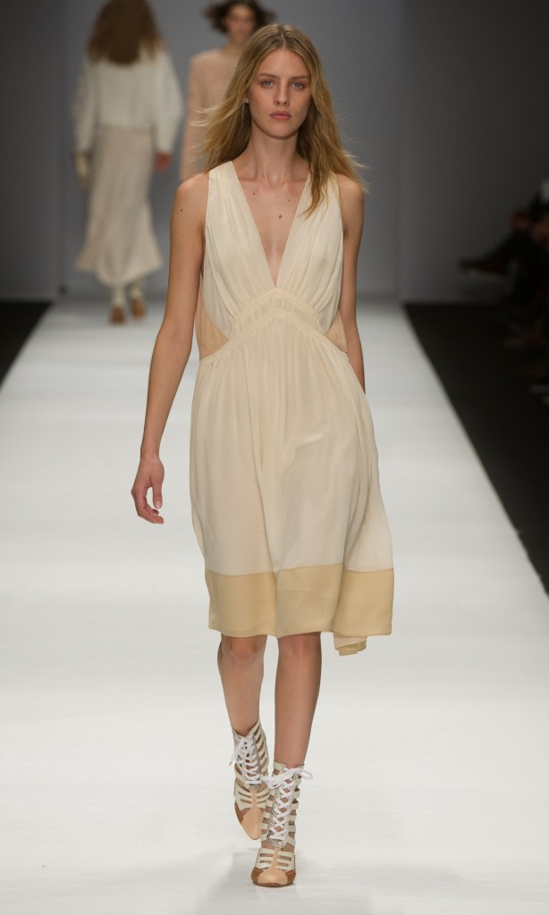 « Je voulais des vêtements simples qui peuvent se traduire par une sensualité épurée, une sorte de douce bohème chic, la simplicité de porter une robe longue en mousseline de soie avec des sandales spartiates » Vanessa Bruno