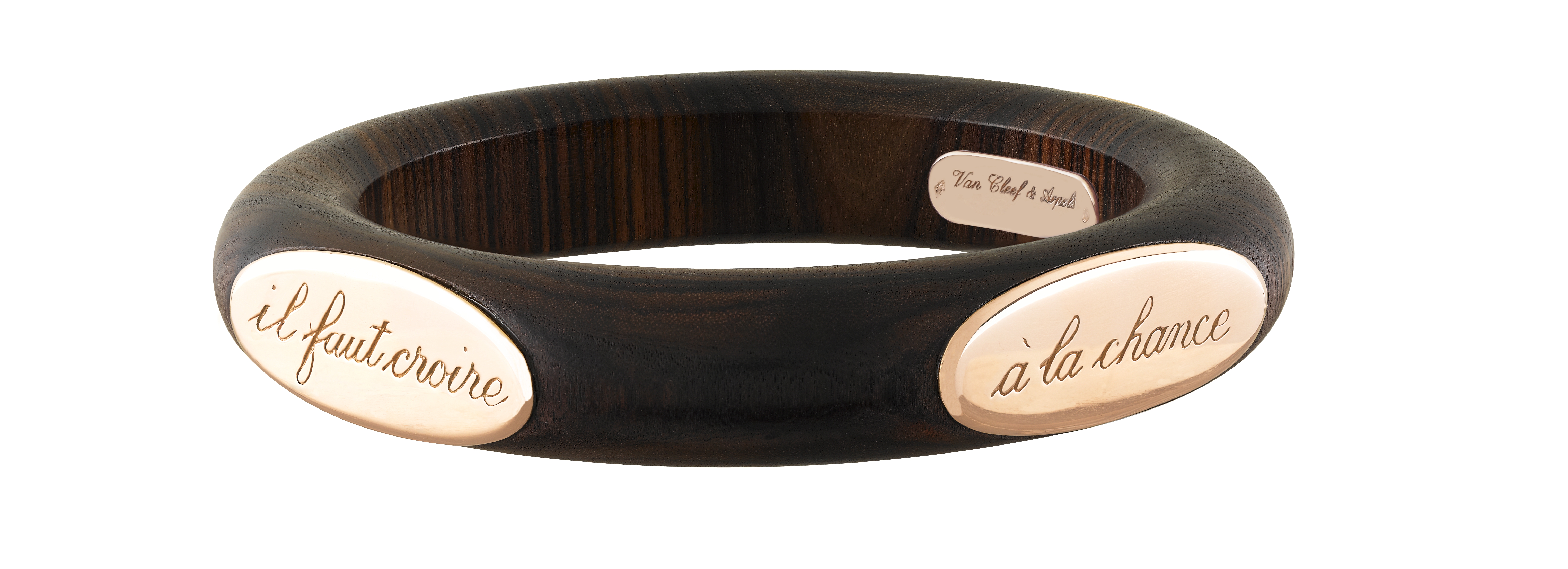 VCARO3PJ00 – CROIRE A LA CHANCE bracelet, violet wood, pink gold, medium model V5