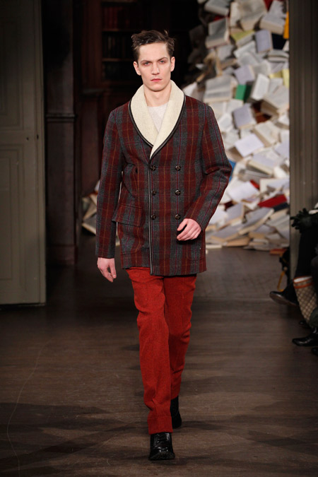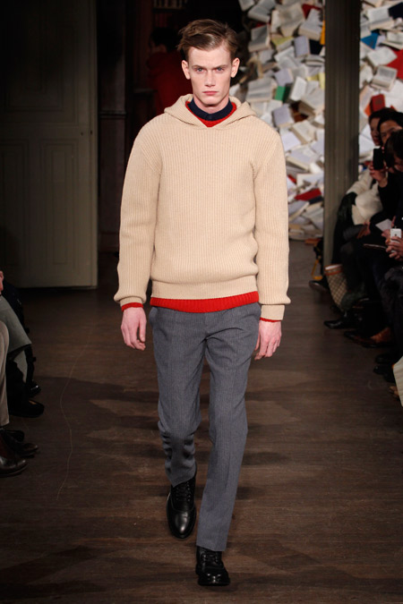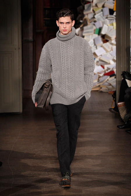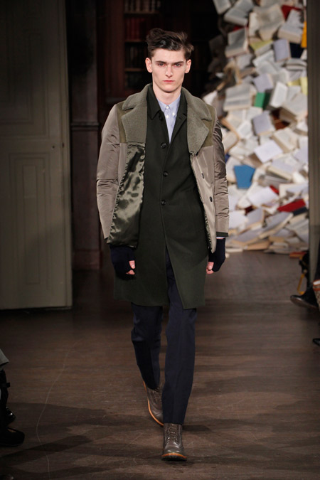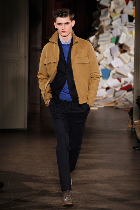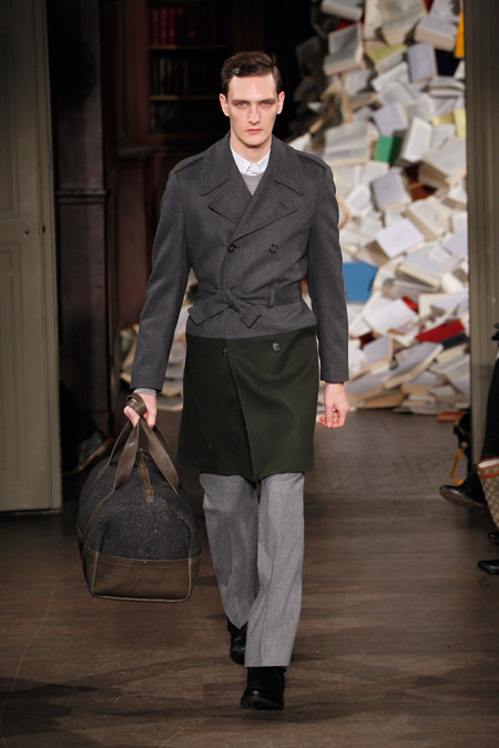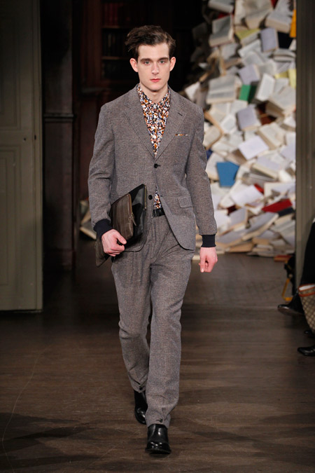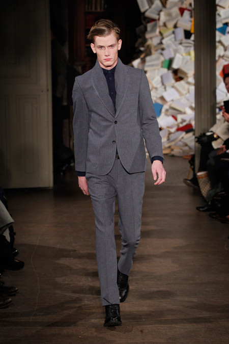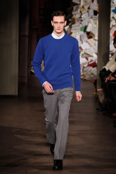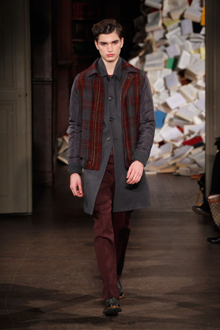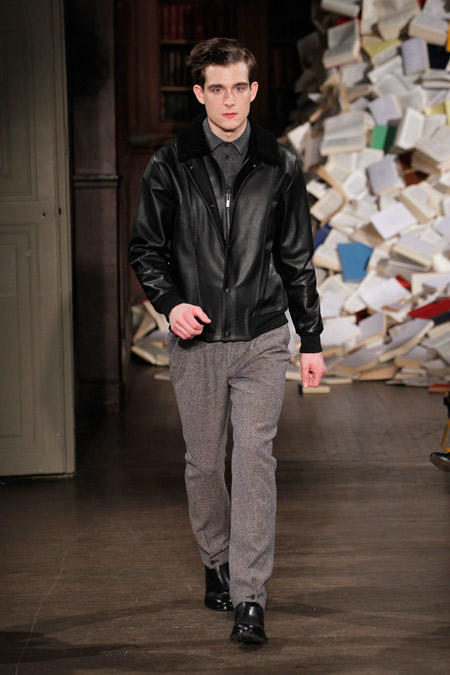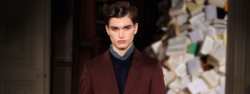 Pour l’Automne Hiver 2013-2014, les deux créateurs nous proposent un vestiaire urbain et chic aux coupes simples et précises, pour un homme se réinventant en écrivain un peu mondain. On l’imagine aisément sur une antique machine à écrire penché sur l’écriture de ses mémoires ou encore attablé au Café de Flore en quête d’inspiration fumant cigarette sur cigarette.