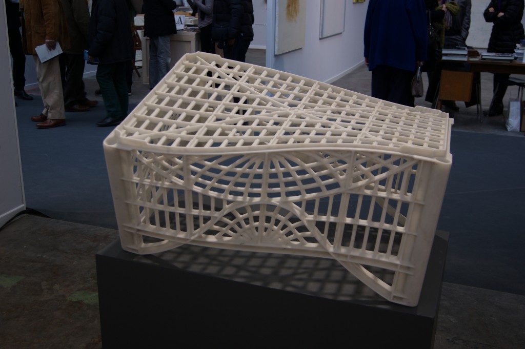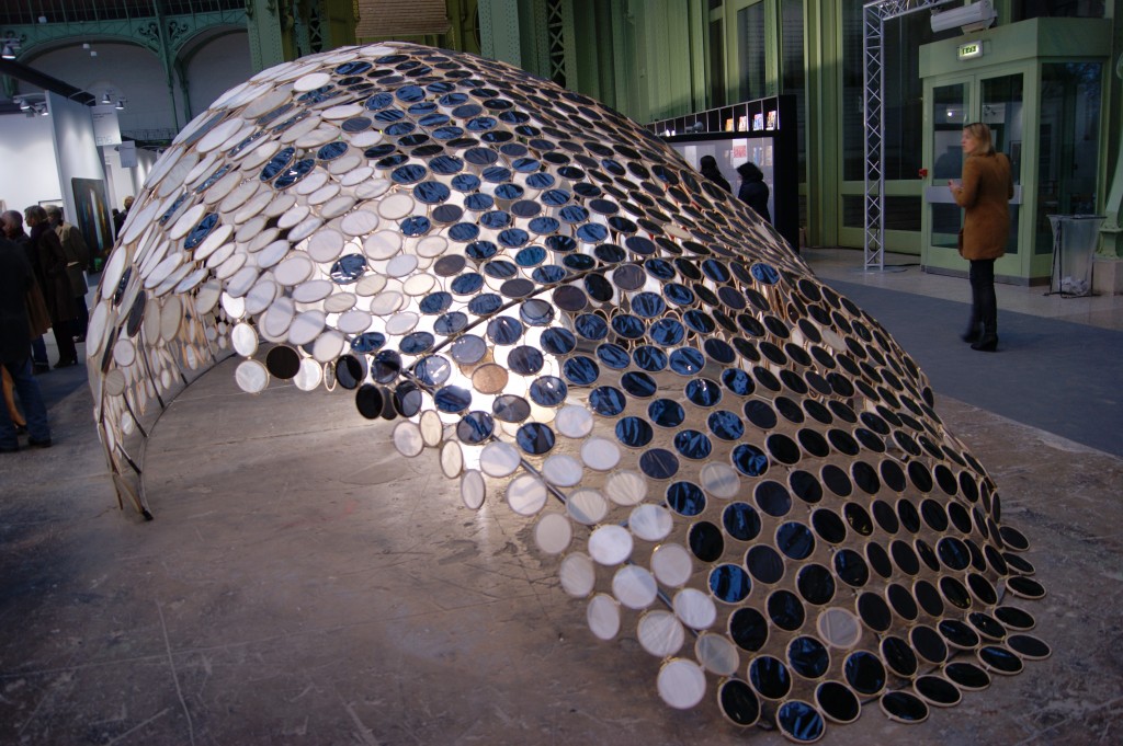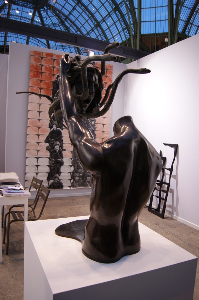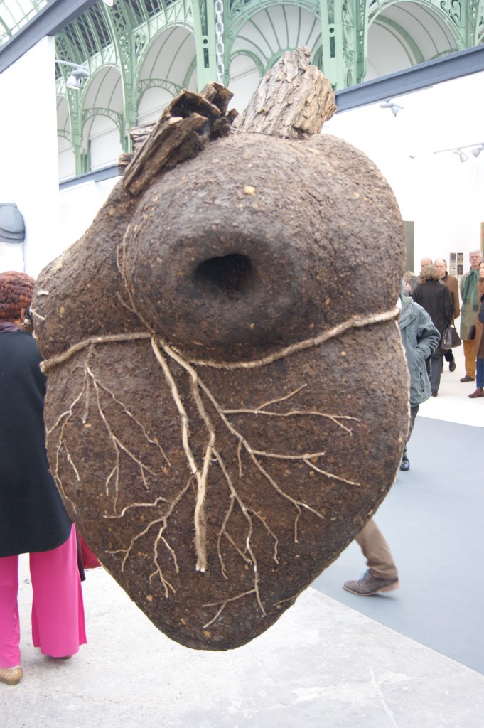 L’une des belles découvertes de cette foire est sans contexte l’artiste Dimitri Tsykalov présenté sur le stand de la Galerie Rabouan-Moussion. Son impressionnante sculpture Heart trône suspendue au centre de la nef. Ce cœur végétal fait de racines, de terre et de branchettes artérielles reste une profonde allégorie de la terre nourricière, source de vie fragile, friable et pourtant point de départ artistique.