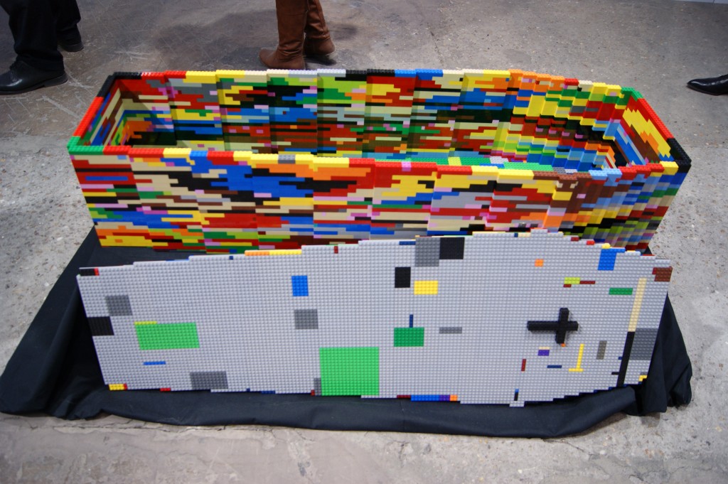 Ce cercueil en Légo serait-il un moyen détourné de nous dire que la mort n’est finalement qu’un jeu ou plutôt nous renverrait à la fin de l’enfance si promptement enterrée dès l’entrée dans l’âge adulte ?