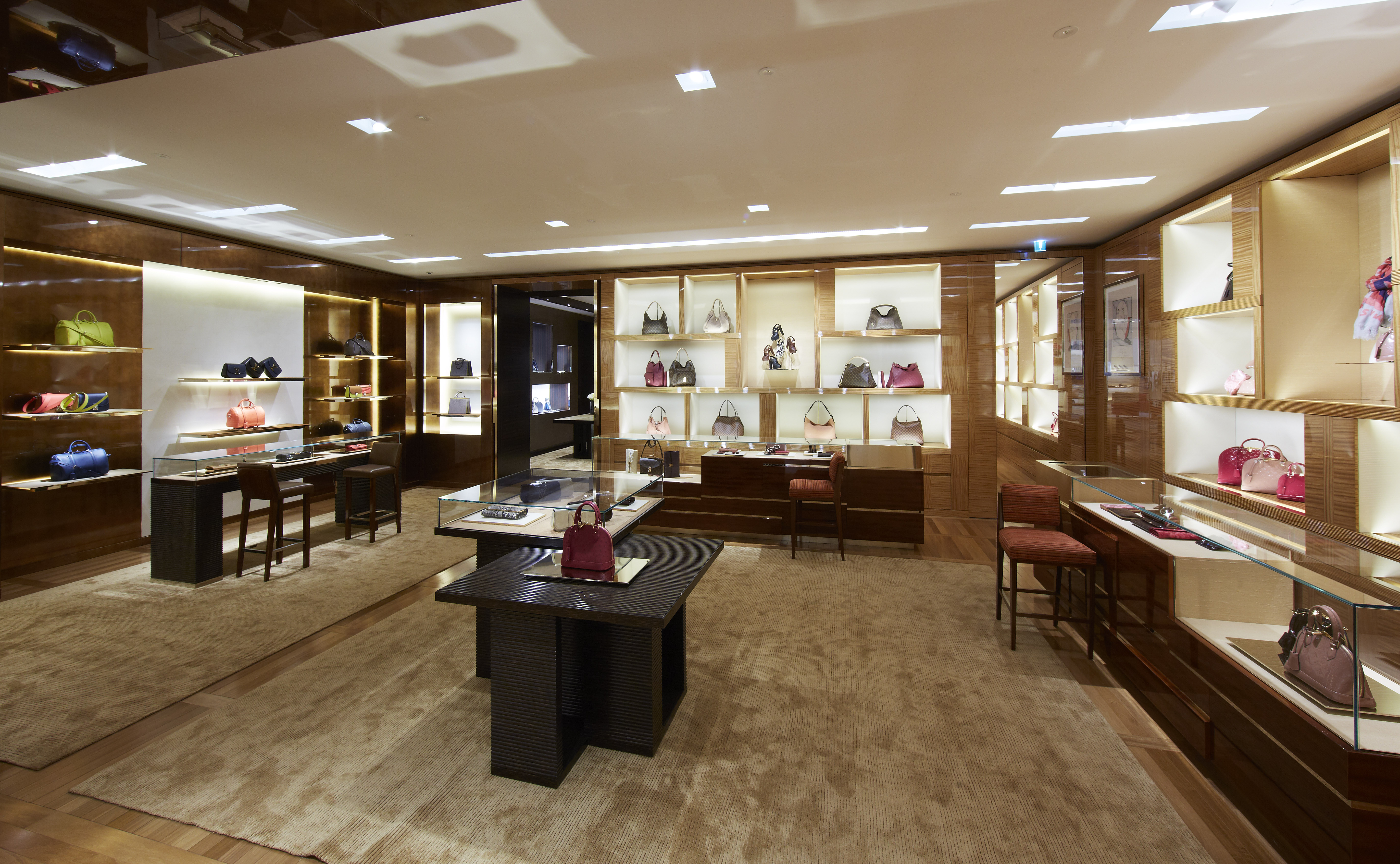 Tout le savoir-faire de la Maison Louis Vuitton est présenté. Au rez-de-chaussée, sac, accessoires et petite maroquinerie sont proposés.
