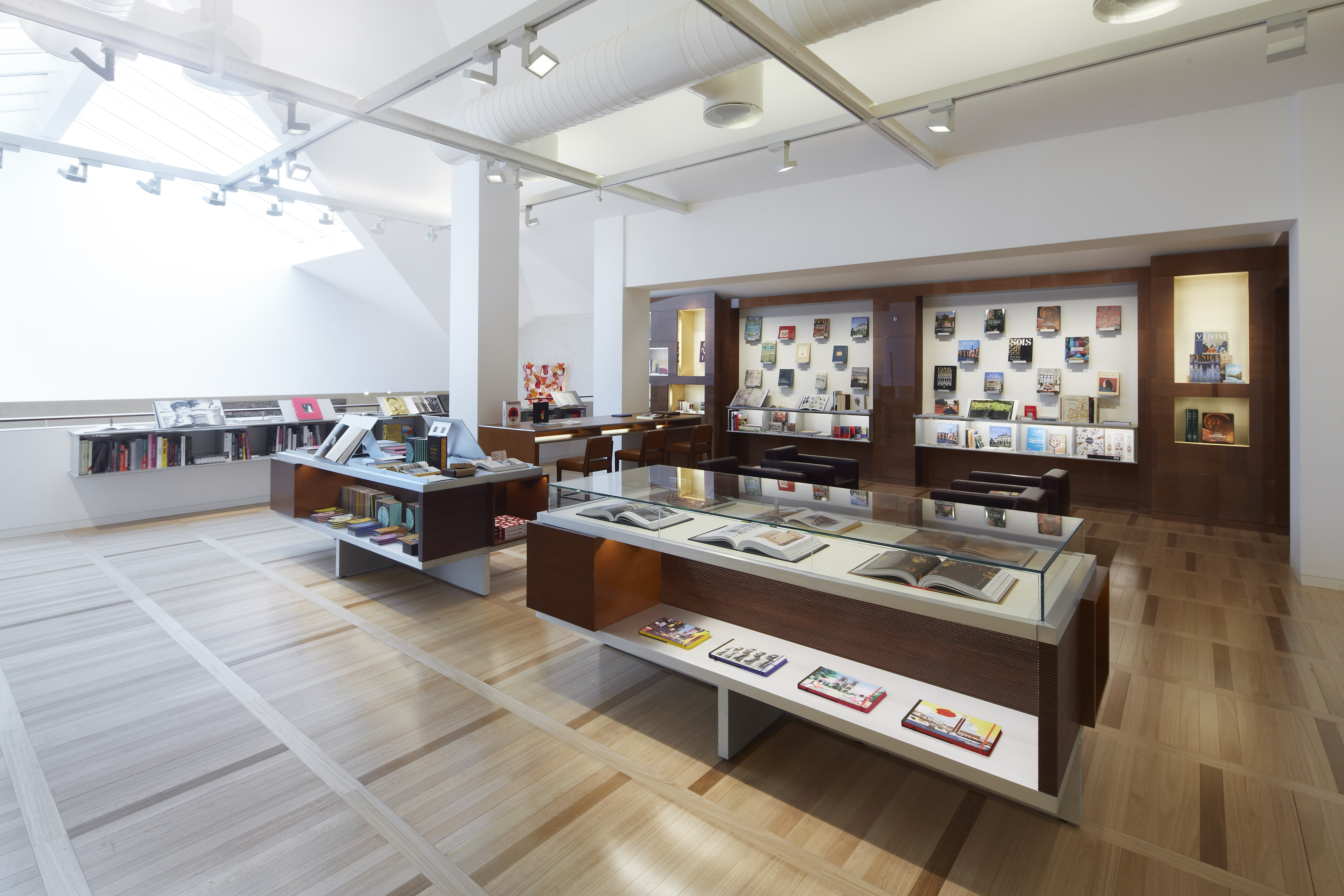 Les dernières marches de l’escalier mènent à la librairie d’art qui propose une sélection pointue de livres d’art et de publications des Editions Louis Vuitton.