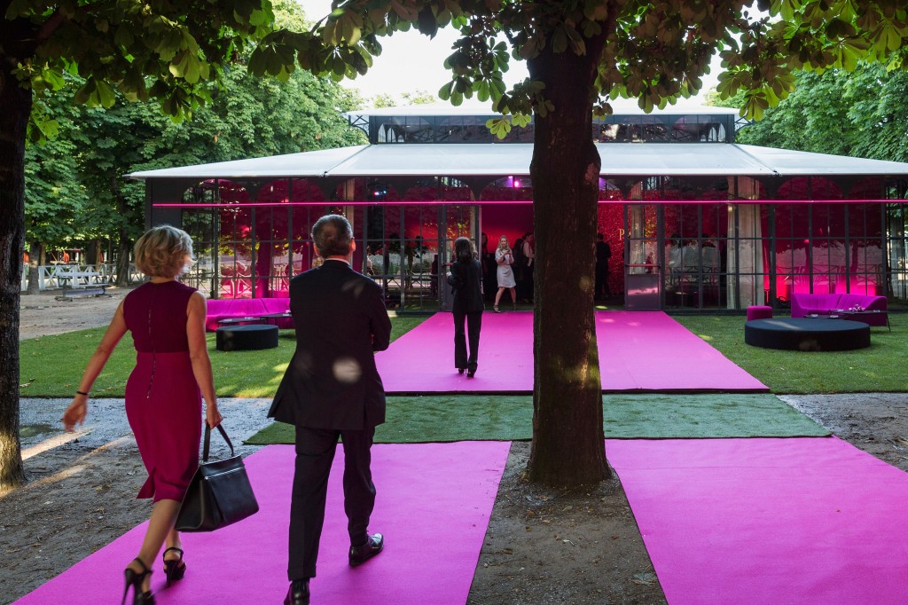 Puis les invités se sont dirigés vers le second lieu de cette journée riche en émotion. A quelques pas de la Place Vendôme, l’Orangerie éphémère du Jardin des Tuileries attendait les 350 invités de la marque, VIP, clients et célébrités dans une éblouissante et envoûtante féerie rose.