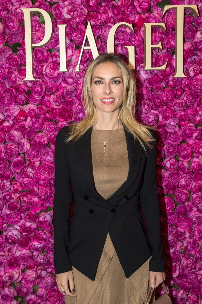 L’actrice française Béatrice Rosen portait un collier en or blanc serti de 88 diamants taille brillant et des boucles d’oreille en or blanc serties de 72 diamants taille brillant de la collection Piaget Rose.