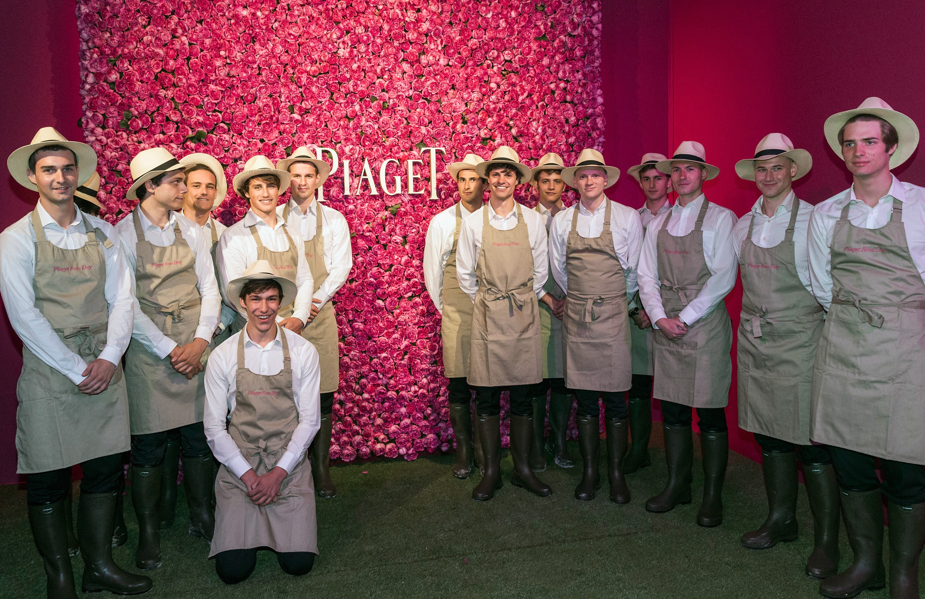 Une haie d’honneur de jardiniers guidait les invités jusqu’à la serre où un sublime mur de 10 000 roses Piaget enveloppait les convives d’effluves douces et subtiles.