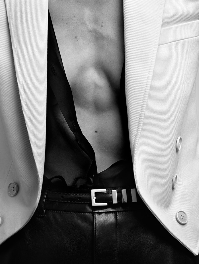 Le créateur aime jouer avec les angles, cadrant ce qu’il faut pour appuyer son propos tout en ajoutant de la rondeur à sa couture.