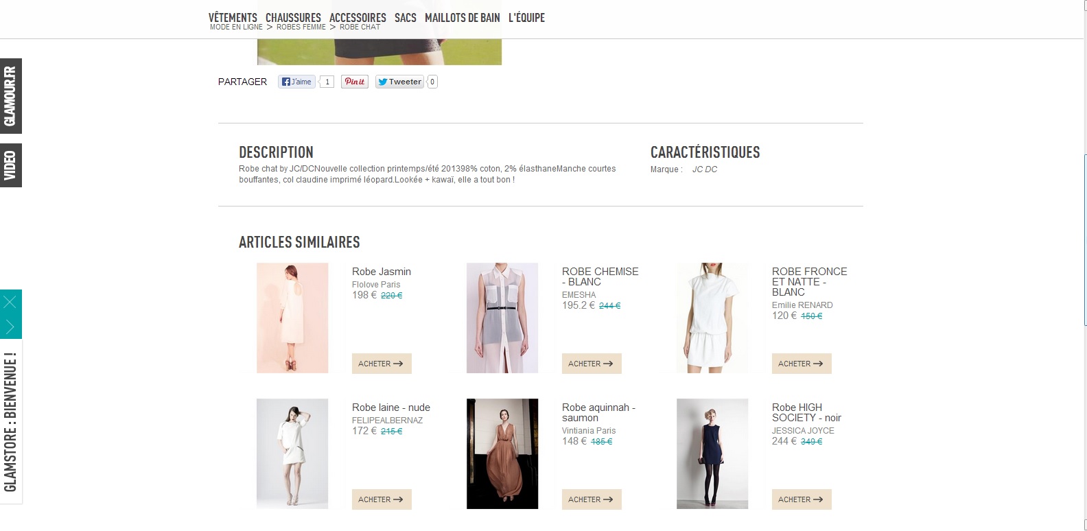 Les petit plus ? Vous pouvez même voter pour les produits les plus glamour ou partager en un clic votre shopping sur les réseaux sociaux ! Le site vous propose même des articles similaires, histoire de vous inspirer encore plus et vous offre la possibilité de vous inscrire à la newsletter. Alors qu’attendez-vous pour succomber aux coups de coeur de la rédaction ?