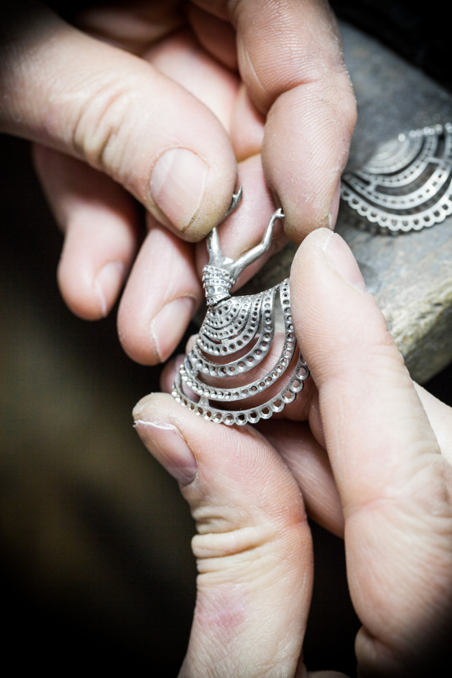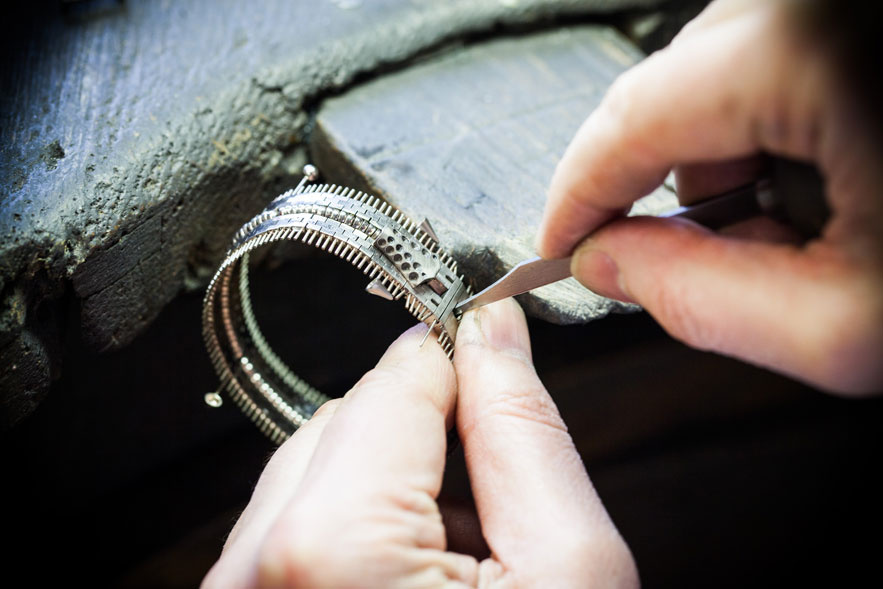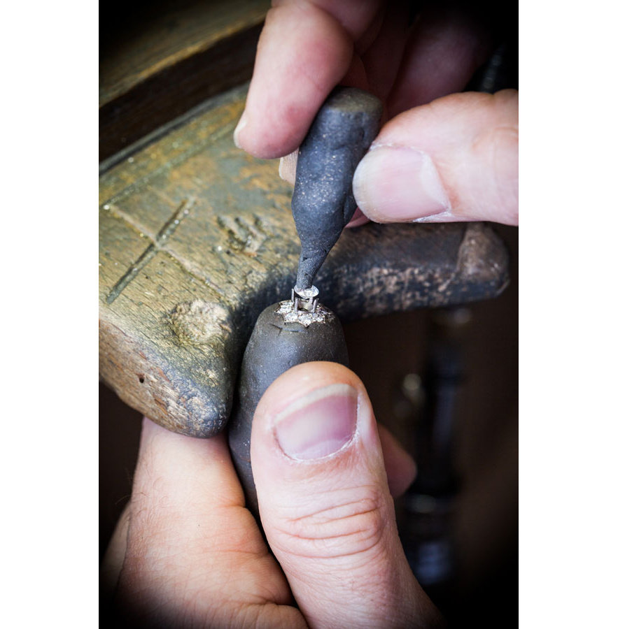 La création est ensuite délicatement polie trois fois jusqu’à ce que chaque facette du bijou – visible ou invisible – brille d’un lustre sans pareil.