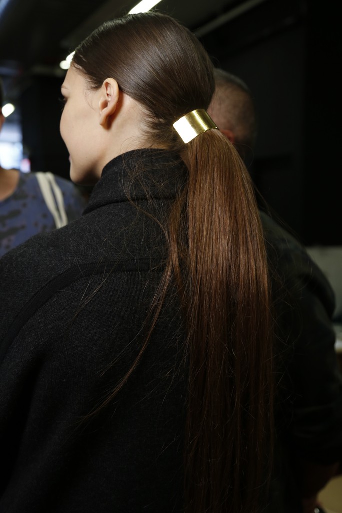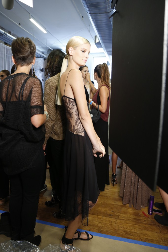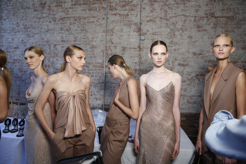 Une nouvelle fois, Jason Wu fait mouche avec sa collection Printemps-Été avec des silhouettes fluides épurées, faites pour des femmes sensuelles aimant des formes et une certaine structure, dans ce fameux style chic sans effort qui n’est pas pour nous déplaire. Queue de cheval stricte et paillettes sur les paupières, la femme Jason Wu en coulisses croque la vie à pleines dents.