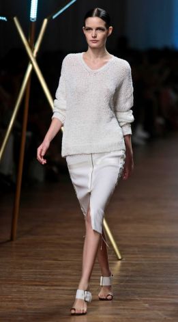 Aux imprimés forts des dernières saisons, Jason Wu a préféré cette saison la légèreté de couleurs claires où l’or, l’ivoire, le champagne et le gris adoucissent la rigueur d’un noir, d’un sauge ou d’un bleu marine dans un effortless chic terriblement attirant.