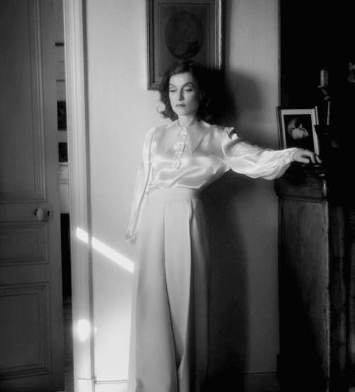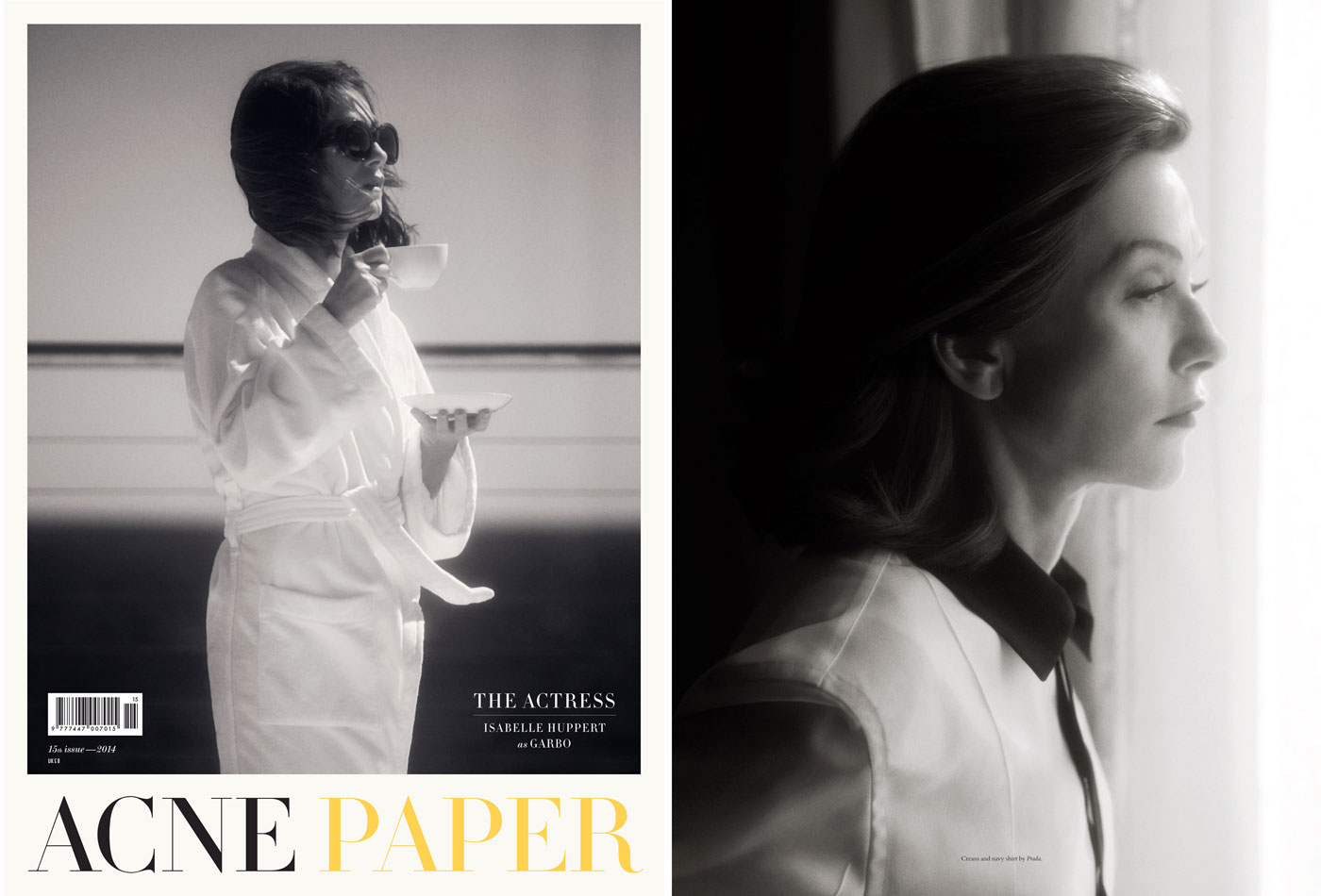 Ainsi Isabelle Huppert sirote une tasse de thé pendant une pause sur le plateau photo où elle incarne Greta Garbo et apparaît en couverture du magazine à travers l’objectif d’Andreas Larsson.