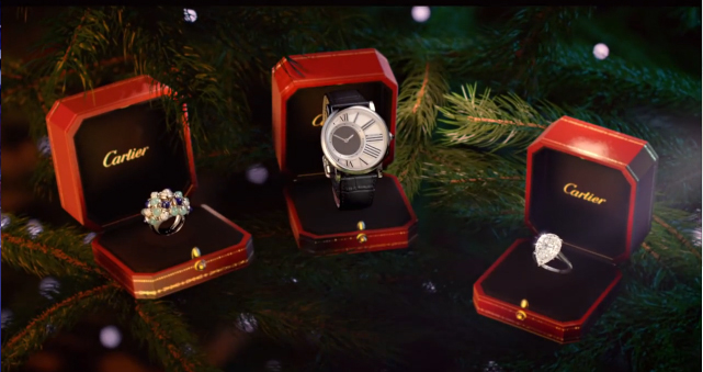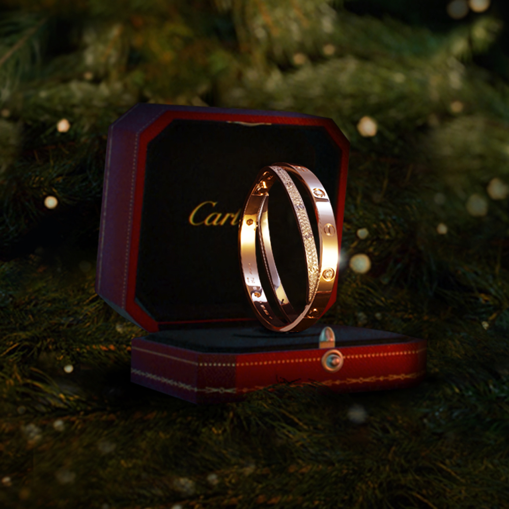 Bagues emblématiques, bracelet LOVE et garde-temps d’exception (montre Tank ou collection Ballon Bleu) célèbrent l’esprit de Noël et font scintiller les sapins décorés de rouge et d’or.