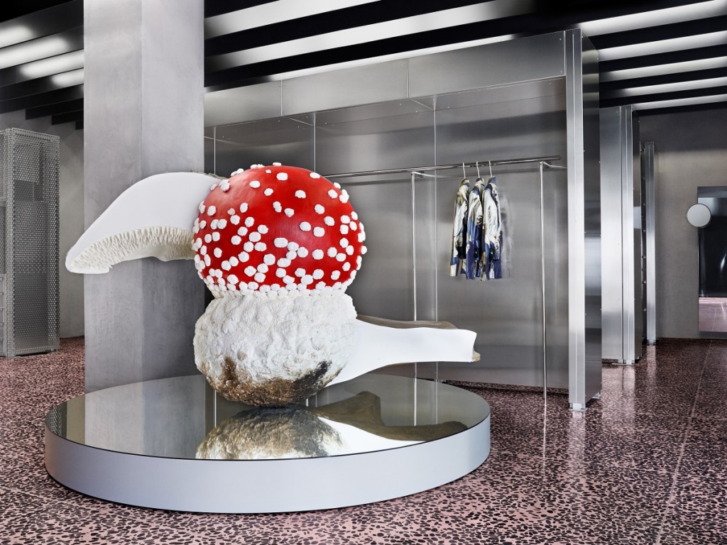 L’artiste belge Carsten Höller, grand ami de la marque, a signé The Giant triple mushroom, une installation artistique qui accueille les visiteurs.