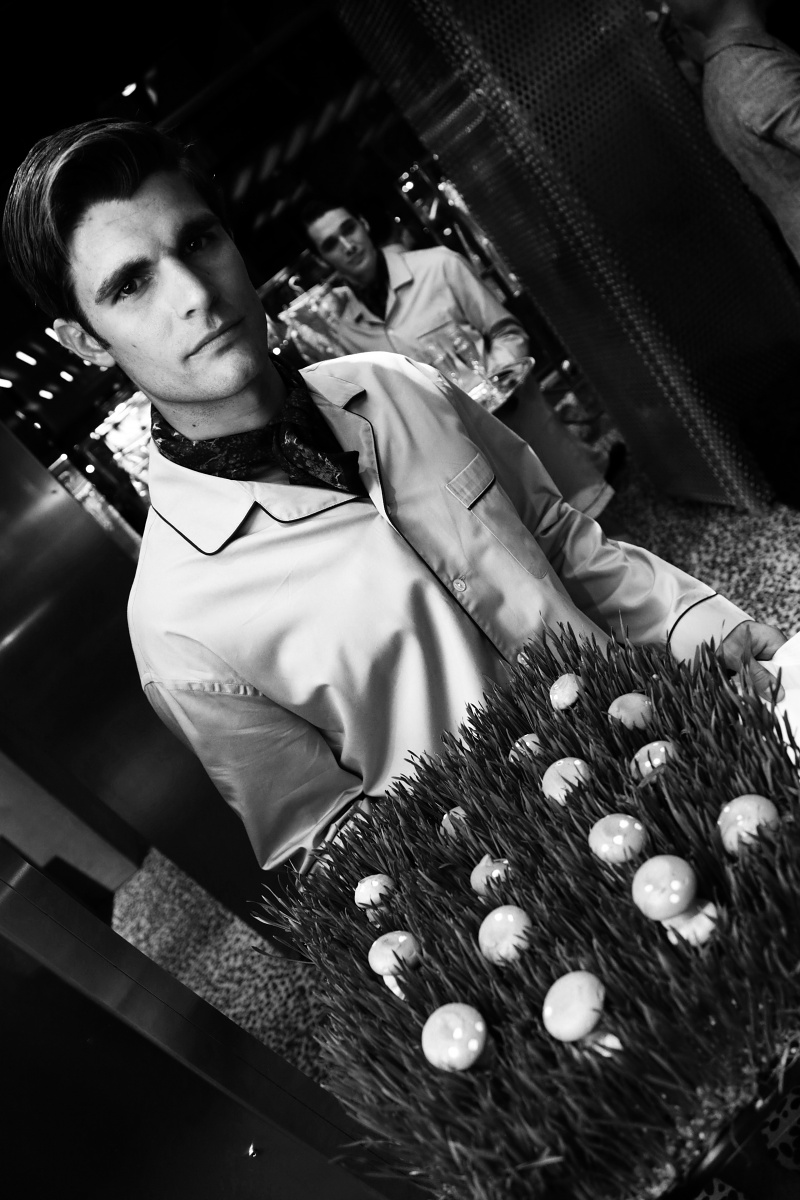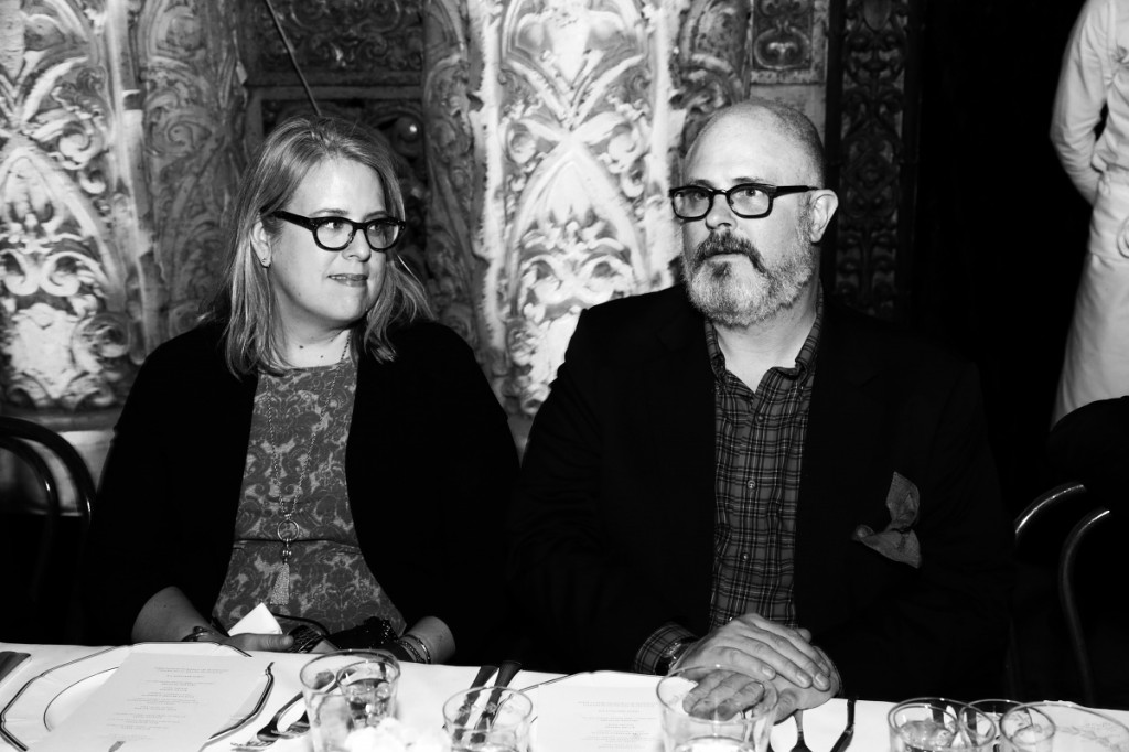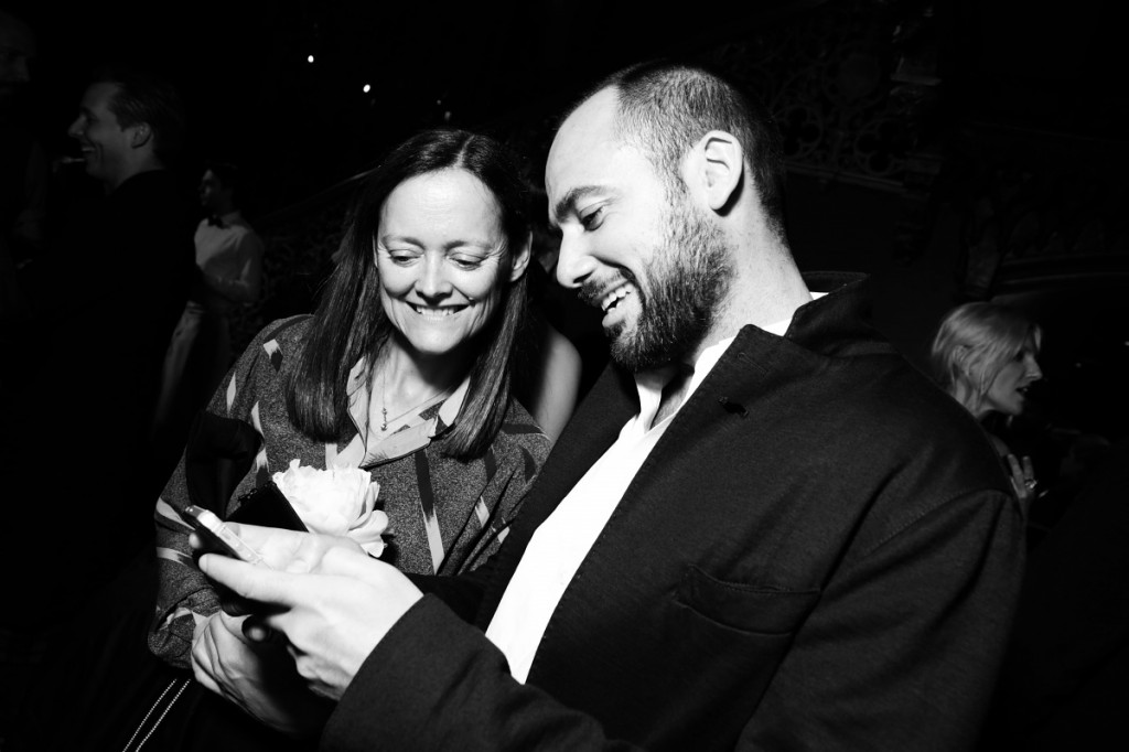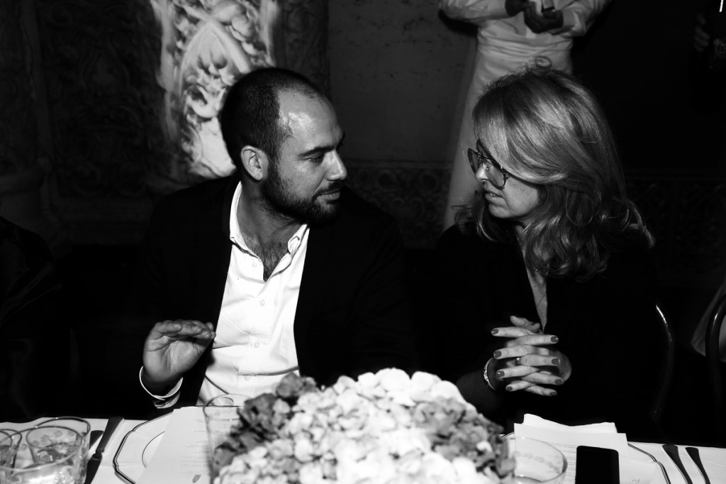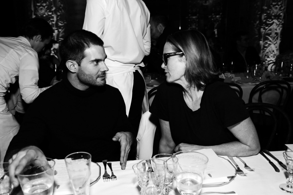 Un plus tard dans la soirée, une centaine d’happy fews a été convié à un dîner de fête dans la grande salle dorée du futur Ace Hôtel qui ouvrira ses portes au mois de janvier dans l’enceinte de l’United Artists Theatre. Sous un chapiteau, le chorégraphe Ryan Heffington accueillait les invités dans le hall avec des pivoines roses lumineuses.