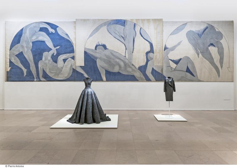 Huit silhouettes sont par ailleurs installées dans la salle Matisse du Musée d’Art Moderne de la Ville de Paris voisin. Posées sur des estrades blanches, elles dialoguent de la plus belle des manières avec deux oeuvres du peintre exposées La Danse ou Lutte des nymphes et La Danse inachevée en partageant les couleurs et la précision.