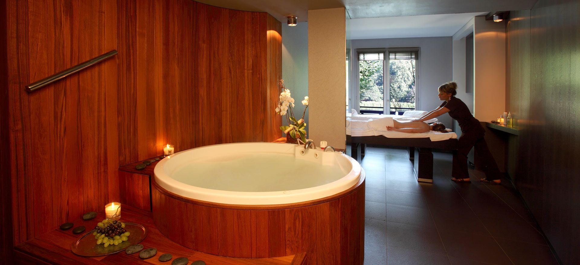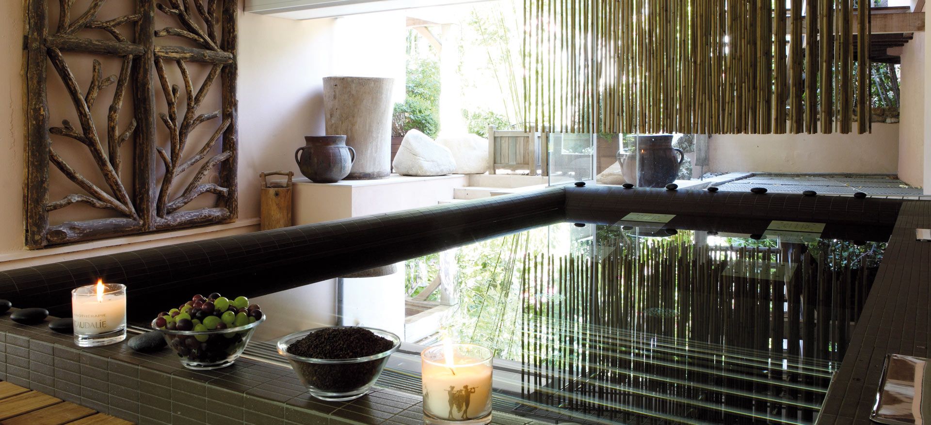 A la lueur d’une bougie de massage qui se transforme en huile hydratante tiède délicatement parfumée à la Fleur de Vigne, le temps suspend ici son vol.